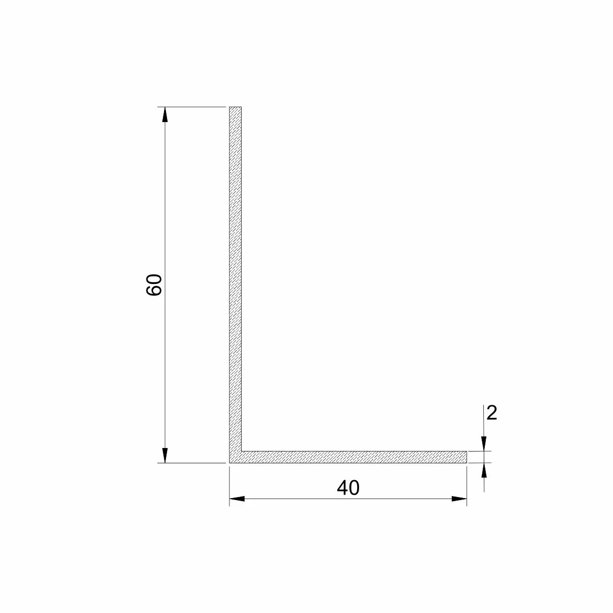 Al. profil opšte namene Završna obrada: neeloksiran Materijal: aluminijum Debljina profila: 2mm
