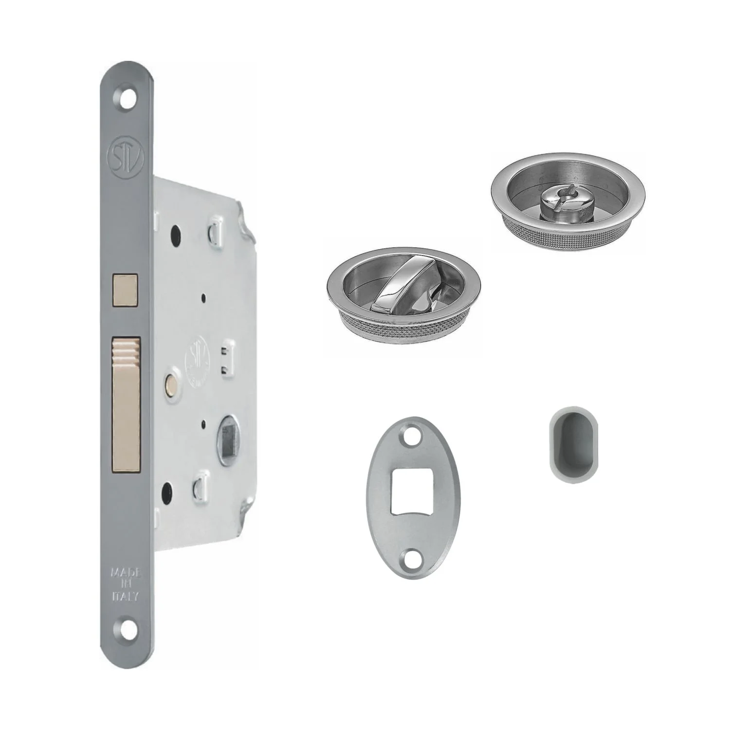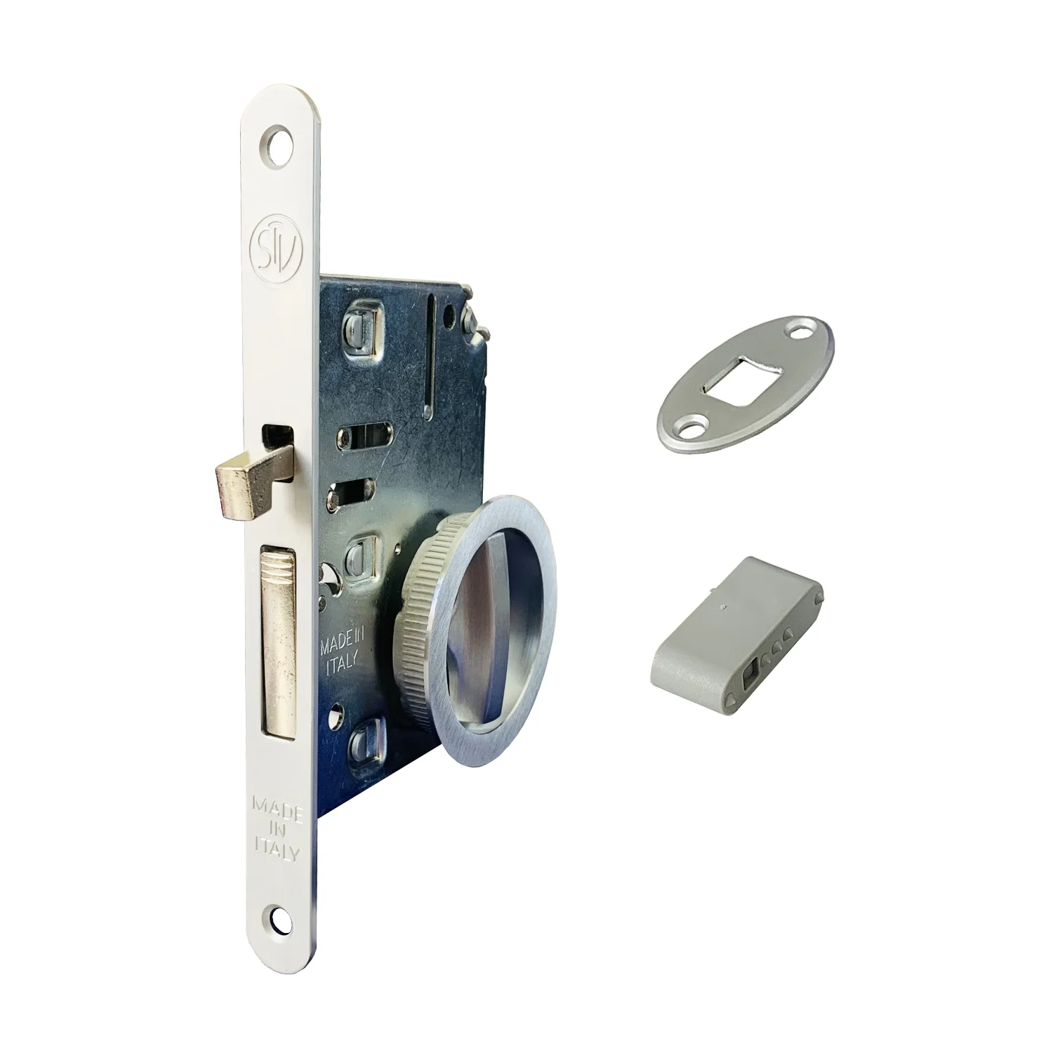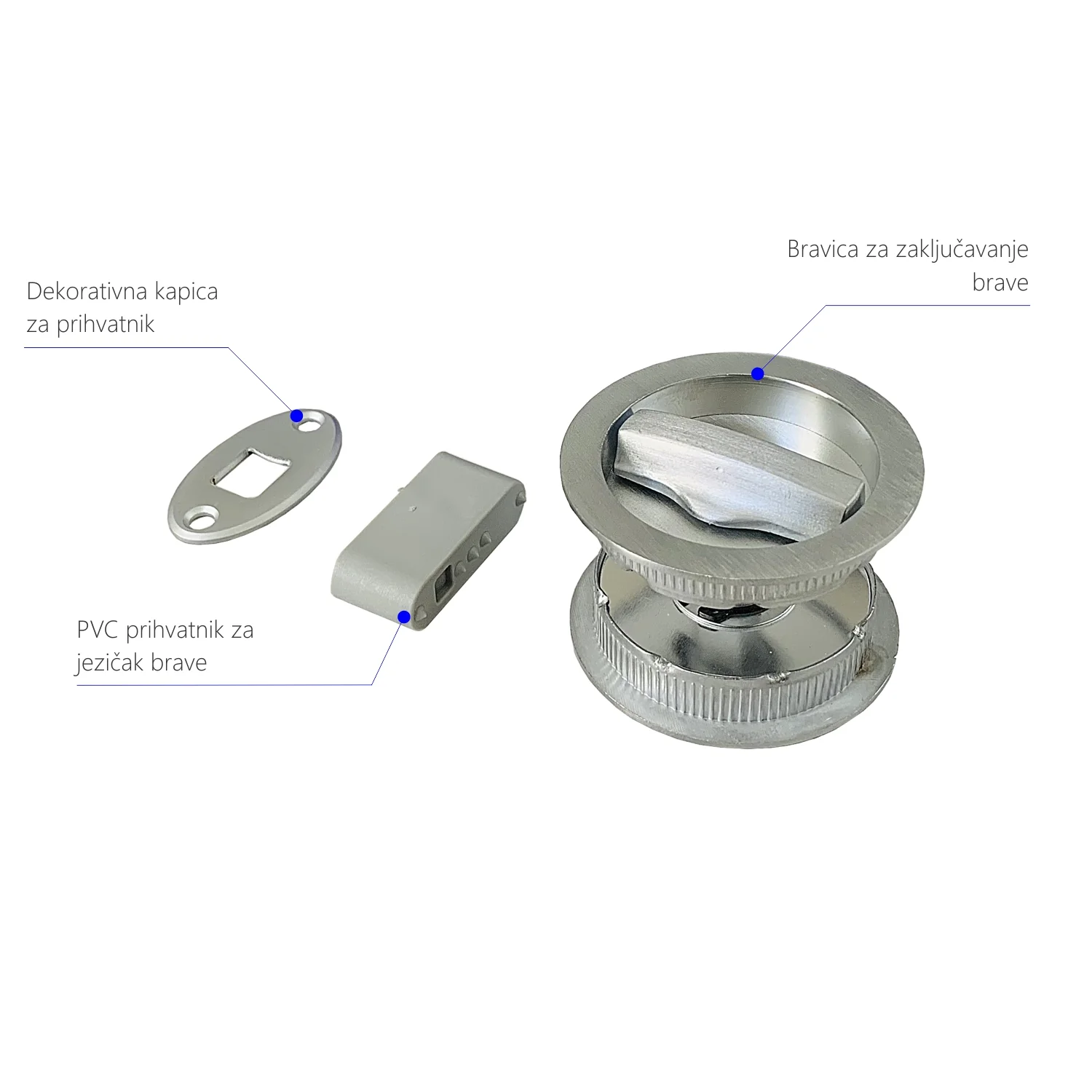 Brava za klizna pregradna vrata KR 1 Brava se koristi za izradu drvenih pregradnih vrata debljina od 30-45mm. Sadži intergisanu polugu koja omogućava lakši povlačenje vrata ukoliko su skrivena (obložena gips pločama). Završna obrada brave je hrom saten. Cena se odnosi na set artikla.