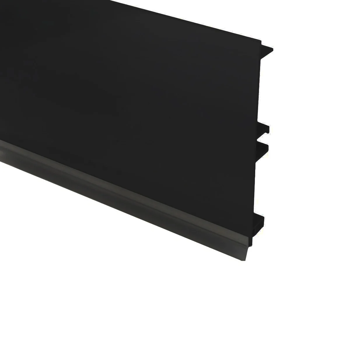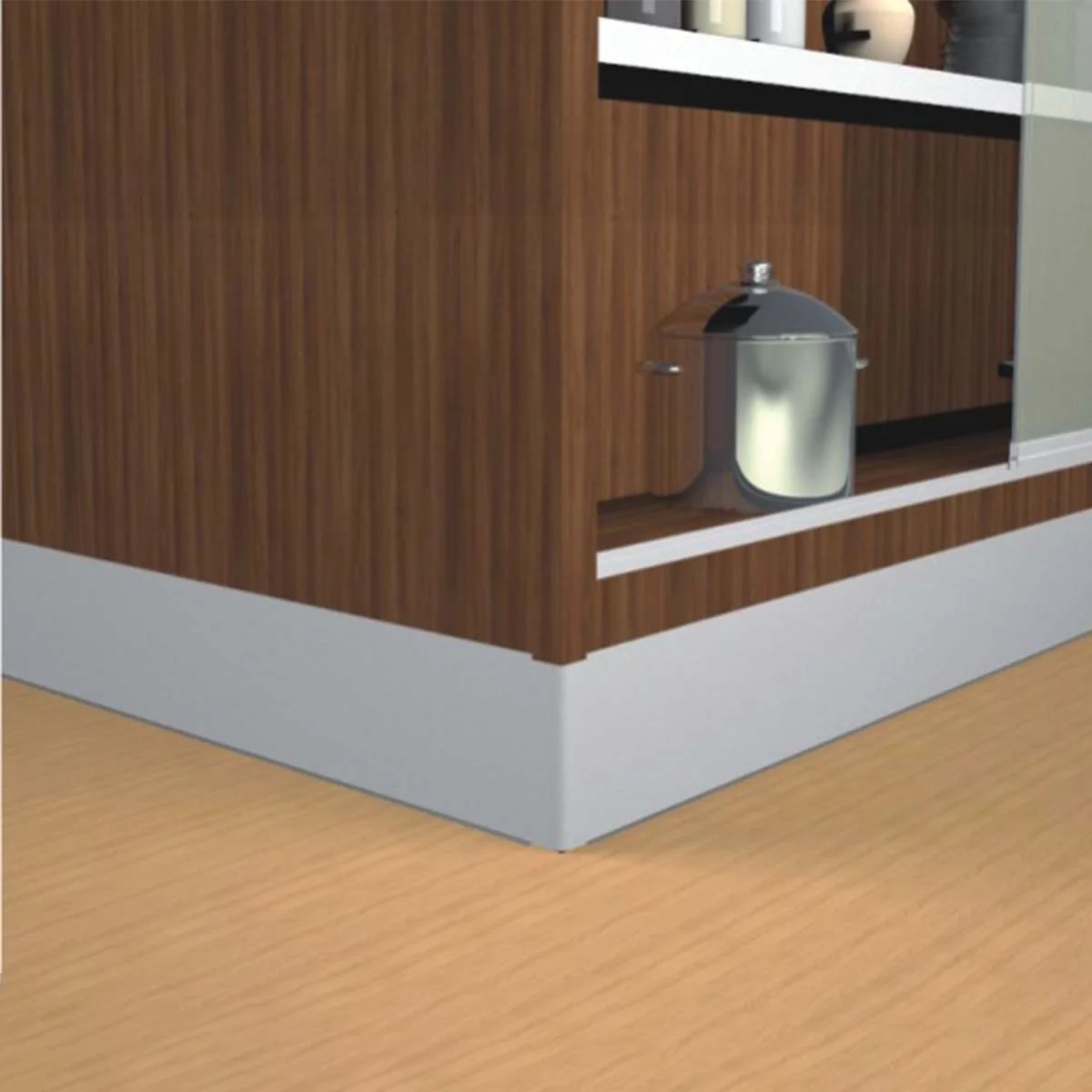 Aluminijumska dekorativna cokla Dekorativna cokla se koristi za spoj kuhinjskih elemenata sa podnom oblogom. Cokla sadrži PVC profil koji sprečava prodor vode i nečistoća ispod kuhinjskih elemenata. Montaža cokle za kuhninjski element (korpus) se vrši sa PVC šnalom, koje se prodaje nezavisno od same cokle. Završna obrada cokle je hemijska eloksaža. Visina cokle: 10cm Prodajna dužina cokle: 3m Boja eloksaže: crna