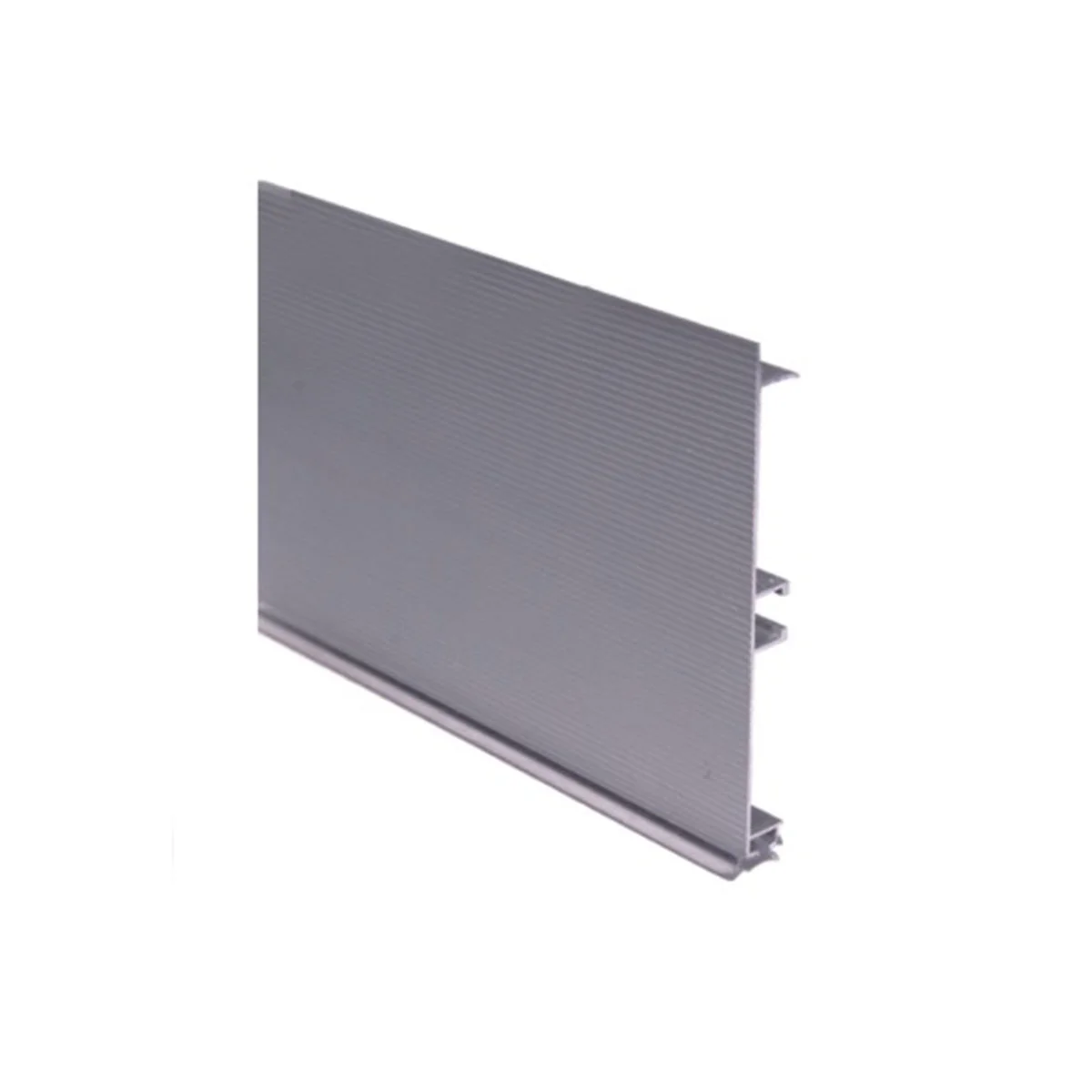 Aluminijumska dekorativna reljefna cokla Dekorativna cokla se koristi za spoj kuhinjskih elemenata sa podnom oblogom. Cokla sadrži PVC profil koji sprečava prodor vode i nečistoća ispod kuhinjskih elemenata. Montaža cokle za kuhninjski element (korpus) se vrši sa PVC šnalom, koja se prodaje nezavisno od same cokle. Završna obrada cokle je hemijska eloksaža. Visina cokle: 10cm Prodajna dužina cokle: 3m Boja eloksaže: Srebro mat