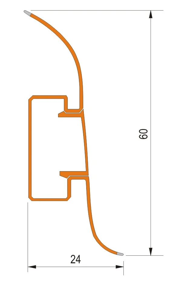 Dekorativna PVC Apollo cokla 570 Koristi se za spoj podnih i zidnih površina. Izradjena je od kvalitetne PVC mase, koja na sebi ima utisnut dezen. Cokla na svojim krajevima kojima se oslanja na pod i zid ima meki silikonski deo koji se prilagođava svim neravninama i ne dozvoljava prolaz tečnosti. Spoj poda i zida sa ovim profilom omogućava vrlo lako održavanje prostora, po najsavremenijim standardima. Kao što se vidi na slikama, PVC APOLLO cokla 570 ima mogućnost sakrivanja kablova. Dužina PVC APOLLO cokle je 2,5m. * Cena se odnosi na 1 komad profila.