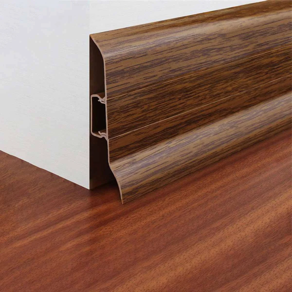 Dekorativna PVC Apollo cokla 595 Koristi se za spoj podnih i zidnih površina. Izradjena je od kvalitetne PVC mase koja na sebi ima utisnut dezen. Cokla na svojim krajevima, kojima se oslanja na pod i zid, ima meki silikonski deo koji se prilagođava svim neravninama i ne dozvoljava prolaz tečnosti. Spoj poda i zida sa ovim profilom omogućava vrlo lako održavanje prostora po najsavremenijim standardima. Kao što se vidi na slikama, PVC APOLLO cokla 595 ima mogućnost sakrivanja kablova. Dužina PVC APOLLO cokle 595 je 2,5m. * Cena se odnosi na 1 komad profila.