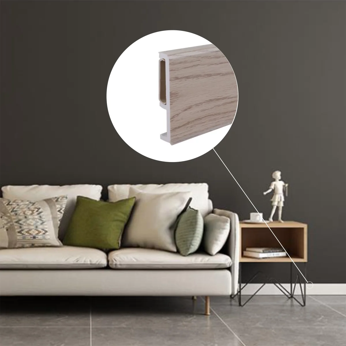 Dekorativna ASTRA cokla Koristi se za spoj podnih i zidnih površina. Izradjena je od kvalitetne pvc mase koja na sebi ima utisnut dezen. Cokla na svojim krajevima, kojima se oslanja na pod i zid, ima meki silikonski deo koji se prilagođava svim neravninama i ne dozvoljava prolaz tečnosti. Spoj poda i zida sa ovim profilom omogućava vrlo lako održavanje prostora, po najsavremenijim standardima. Dužina cokle: 2,5m. Visina cokle: 70mm. Debljina cokle: 4mm. Boja: hrast (R1082).