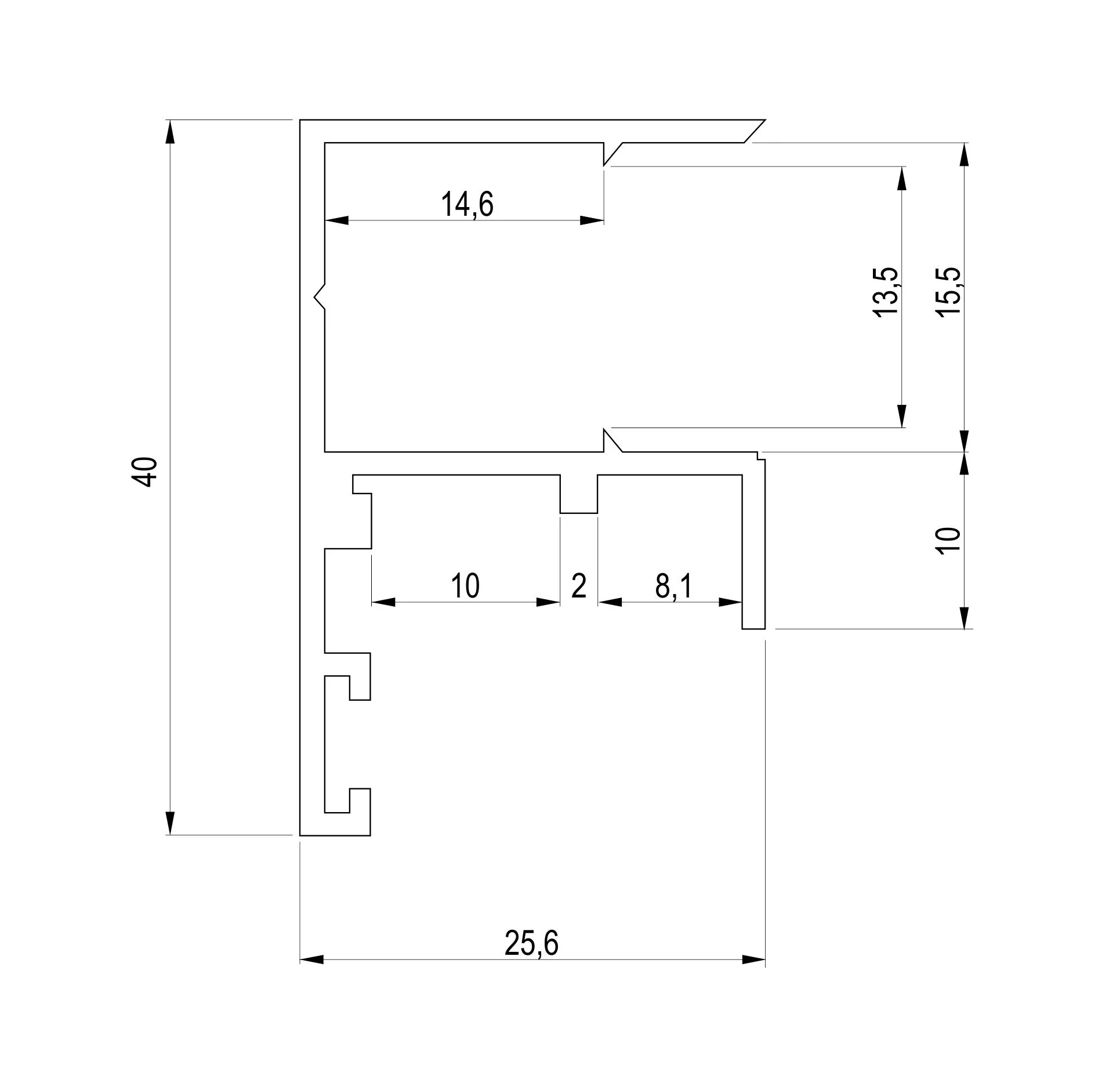EP 1067 aluminijumski profil Profil se koristi kao gornji profil prilikom izrade staklenih zidnih obloga. Profil sadrži intgrisane kanale u koje se može postaviti LED traka. Završna obrada profila je hemijska eloksaža. Prodajna dužina profila: 1.5m; 2m; 3m; 4m i 6m. Boje eloksaže: Srebro mat Površina profila (m2): 0,132