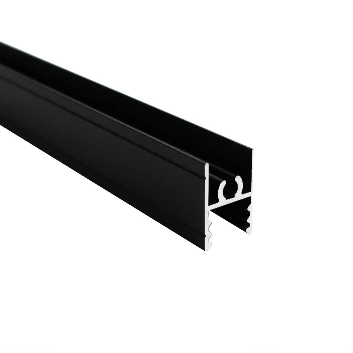 EP10-72 aluminijumska gornja vođica crna Profil se koristi kao gornja vođica prilikom izrade kliznih plakarskih vrata EP10. Maksimalna dužina profila je 6m.