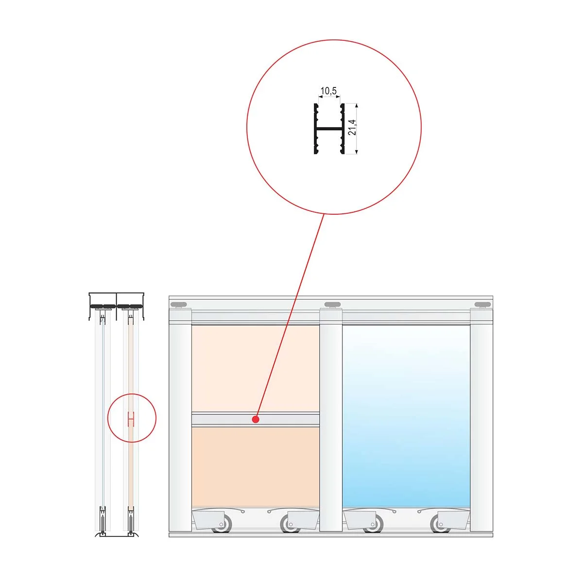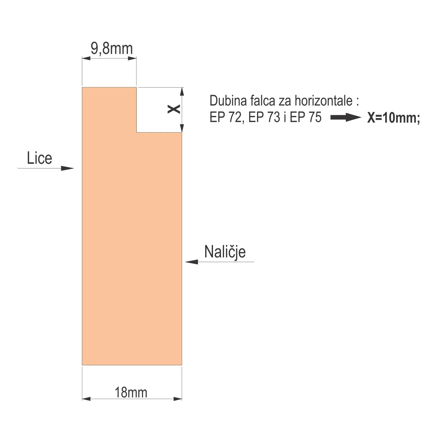 EP10-73 aluminijumski pregradni profil - srebro mat Profil se koristi prilikom izrade kliznih plakarskih vrata EP10. Pregradni profil EP10-73 služi da napravi podele na vratima, između dve ispune. Profil je namenjen za ispunu debljine 4mm i 10mm, ali uz ispravnu pripremu (falcovanje), može se koristi i drvena ispuna debljine 18mm. Maksimalna dužina profila je 6m.