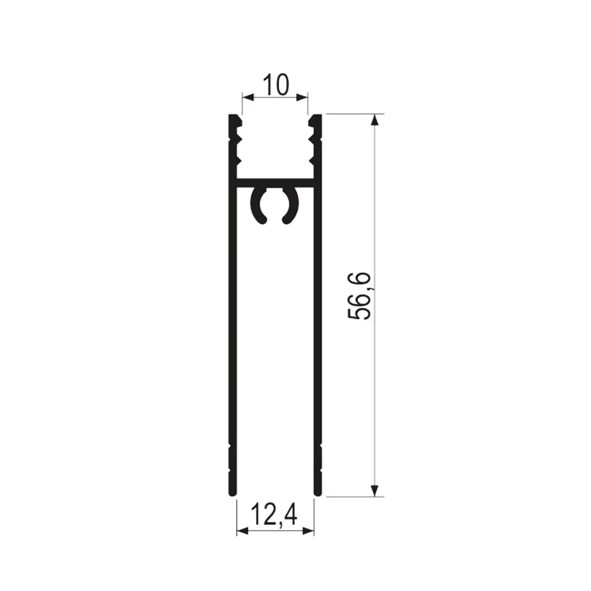 EP10-75 aluminijumska donja vođica crna Profil se koristi prilikom izrade kliznih plakarskih vrata EP10. Maksimalna dužina profila je 6m.