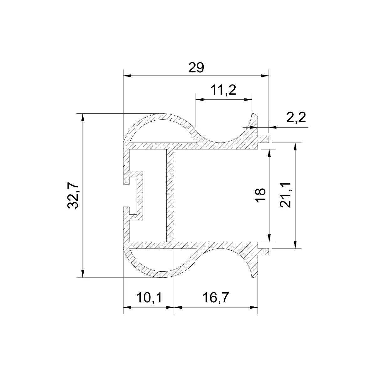 Aluminijumski rukohvat za izradu kliznih plakarskih vrata Rukohvat EP18-48 se koristi za izradu kliznih plakarskih vrata uz EP18 klizni sistem. Namenjen je za drvene ispune 18mm i staklene ispune 4mm debljine. Materijal: Eloksirani aluminijum Eloksaža: Srebro mat Prodajne dužine rukohvata su: 2.75m i 5.5m * Cena se odnosi na metar profila.