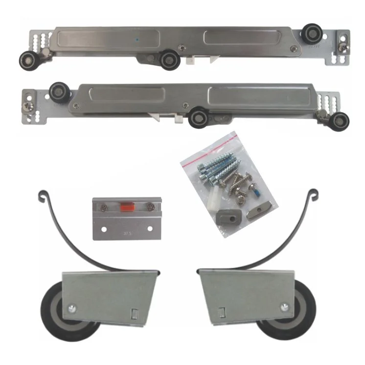 EP18 Metalni mehanizam sa Soft Close usporivačem u setu ima standardne donje točkiće i koristi se kod izrade EP18 kliznih vrata. Maksimalna nosivost usporivača je 50kg. Donji standardni točkići su predviđeni da nose vrata do maksimalno 45kg težine. Mehanizam se prodaje kao set za jedna klizna plakarska vrata.