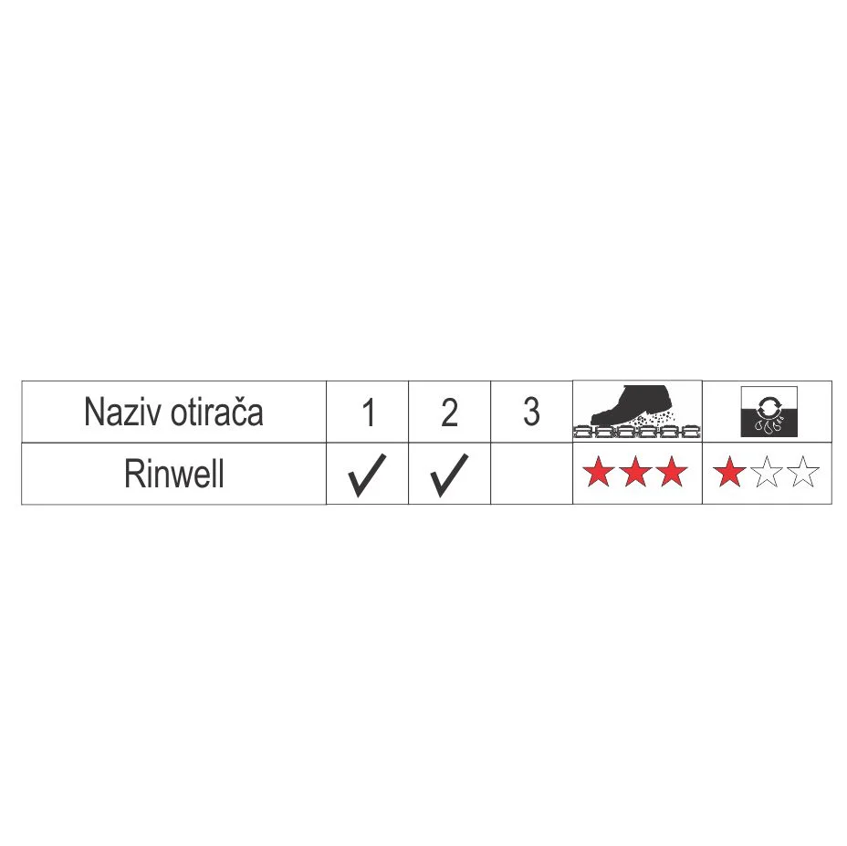 Rinwell otirač je veoma efikasan za spoljašnju i unutrašnju upotrebu. Radi se o veoma grubom otiraču sa izrazitom fukcijom čišćenja. Otporan je na klizanje i na promene temperature. Koristi se za uklanjanje grubih nečistoća. Otirač ima na sebi integrisani gumeni okvir u crnoj boji. Uklanjanje nečistoća sa otirača vrši se usisavanjem ili mlazom vode. Pogodan je za porodične kuće, poslovne objekte i tržne centre. Otirač Rinwell dimenzije 70cmx50cm prodaje se na komad. Otirač Rinwell je crne boje.