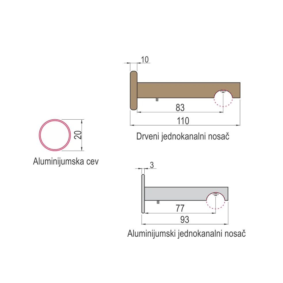 Aluminijumska jednokanalna garnišna Mara Prečnik garnišne je 20mm. Uz samu garnišnu u blister box pakovanju se nalazi odgovarajući broj klizača-kukica, kao i set za montažu. Boja završetka: Natur Završna obrada garnišne: Srebro mat Prodajna dužina garnišne: 3m