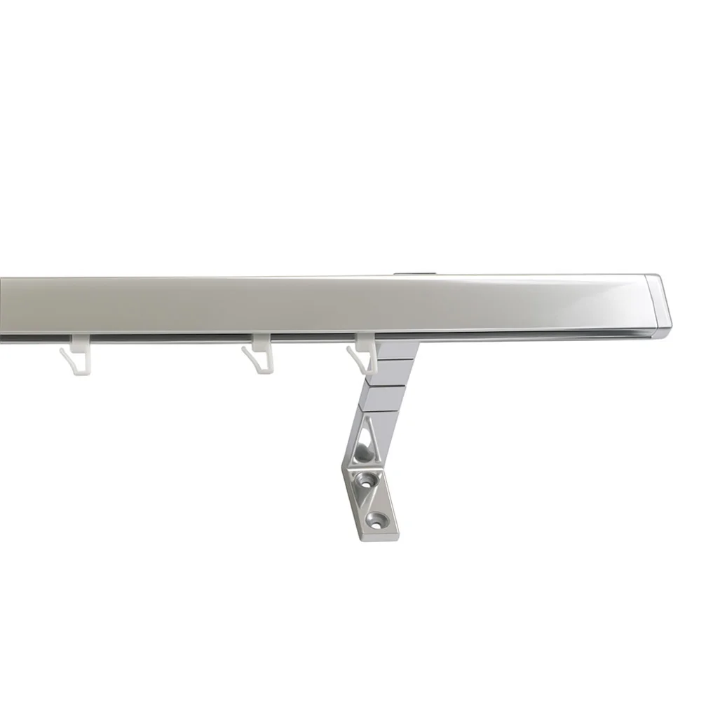 Aluminijumska jednokanalna garnišna Prince Visina garnišne je 28mm. U blister box pakovanju se osim garnišne nalazi i odgovarajući broj kukica-klizača, kao i set za montažu. Završna obrada garnišne: srebro sjaj Prodajna dimenzija garnišne: 2,5m