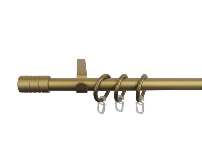Metalna jednokanalna garnišna Čarli Prečnik šipke je 18mm. Uz garnišnu je upakovan i odgovarajući broj alki sa kukicama i set za montažu (24 kom). Tip završetka: Čarli Boja garnišne: Zlato mat Prodajna dužina garnišne: 2,4m