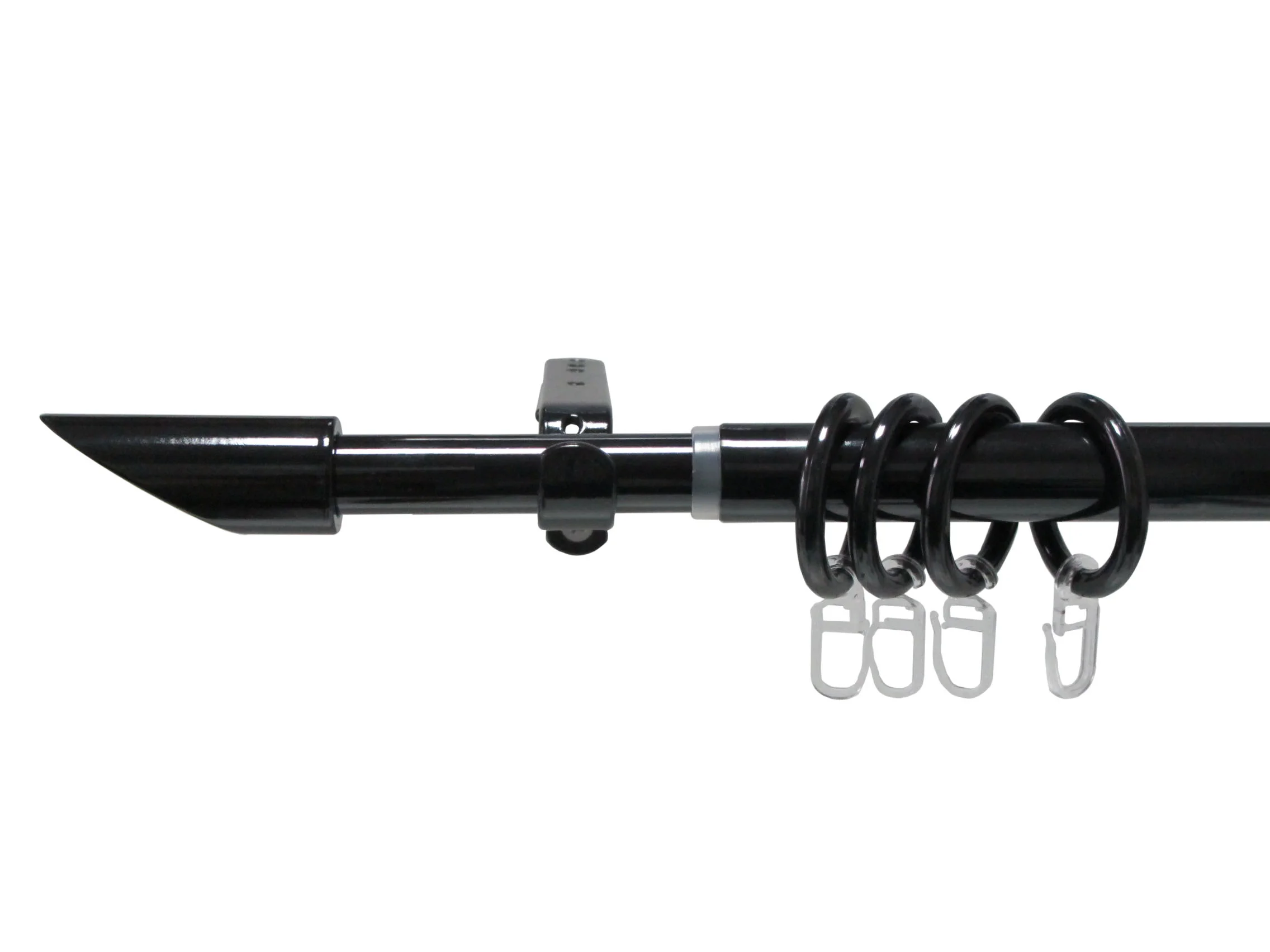 Metalna jednokanalna teleskopska garnišna - crna Uz samu garnišnu u PVC blister box pakovanju se nalaze i ostali delovi potrebni za montažu. Sadržaj blister box pakovanja: nosači, alke, kukice, šrafovi i par završetaka. Tip završetka: Zaobljeni valjak Garnišna se širi od 2,1m od 3,7m. Nosači garnišne se šire od 110mm od 144mm.