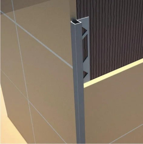 Aluminijumski kocka ger profil za debljinu keramičke obloge od 8mm Aluminijumski kocka ger profil se koristi za zatvaranje i zaštitu spoljnih uglova zidnih keramičkih obloga. Profil se postavlja prilikom ugradnje zidne keramičke obloge, montaža aluminijumskog ger profila se uglavnom vrši lepkovima za keramiku. Završna obrada kocka ger profila je proces hemijske eloksaže tokom kojeg se dodaje sloj aluminijum oksida koji profilu poboljšava izdržljivost i daje krajnji izgled profila. Prodajna dužina profila: 2,7m Debljina eloksiranog sloja: 0,15µm Boja eloksaže: Srebro mat
