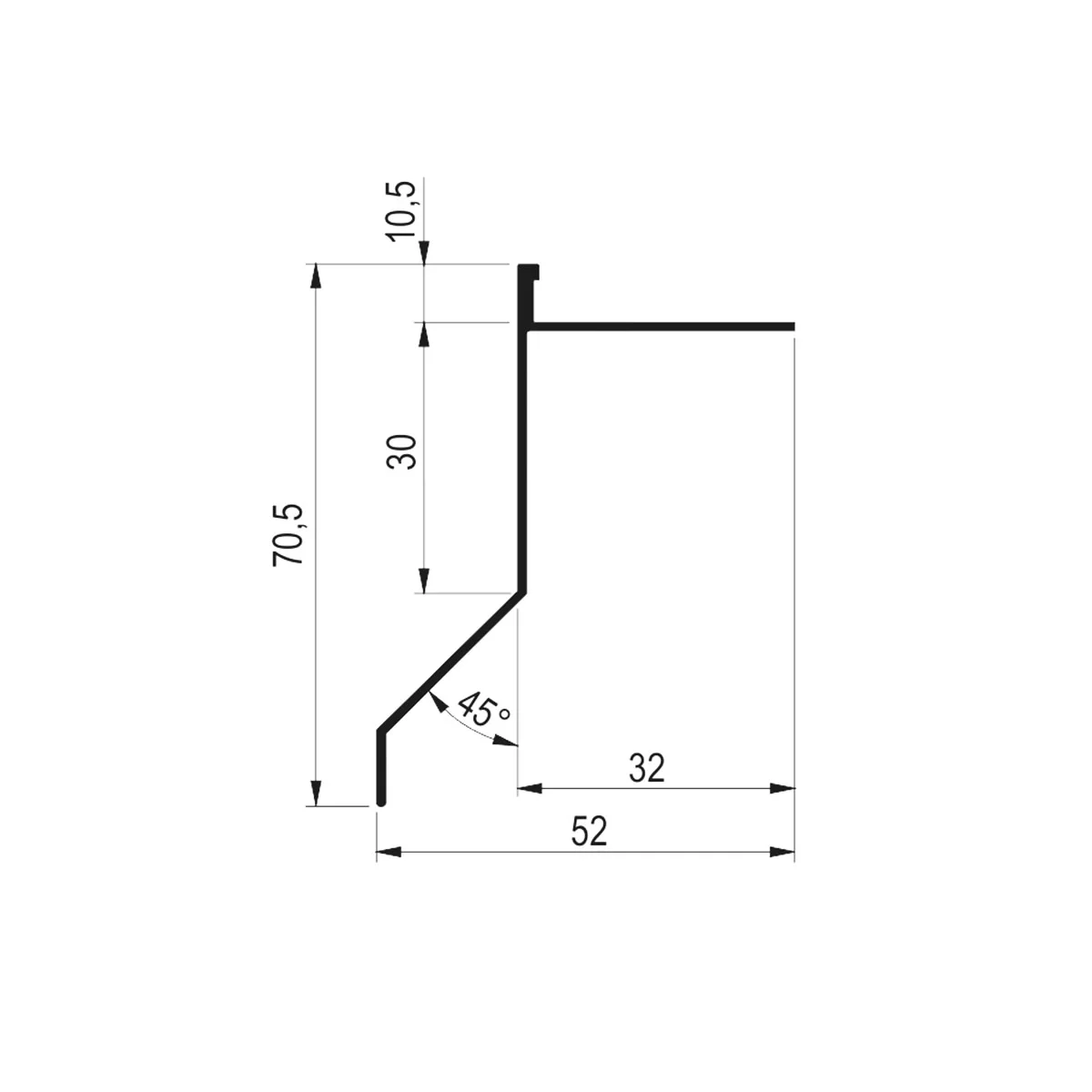 KO Aluminjumska okapnica BELA Profil okapnica se uglavnom postavlja na balkone i terase prilikom postavljanja keramičkih obloga, s obzirom na to da se montira pod keramičke pločice. KO okapnica je namenjena za keramičke obloge 10mm debljine. Materijal: Aluminijum Završna obrada: Bela plastifikacija Prodajna dužina profila: 2.7m *Cena se odnosi na komad profila