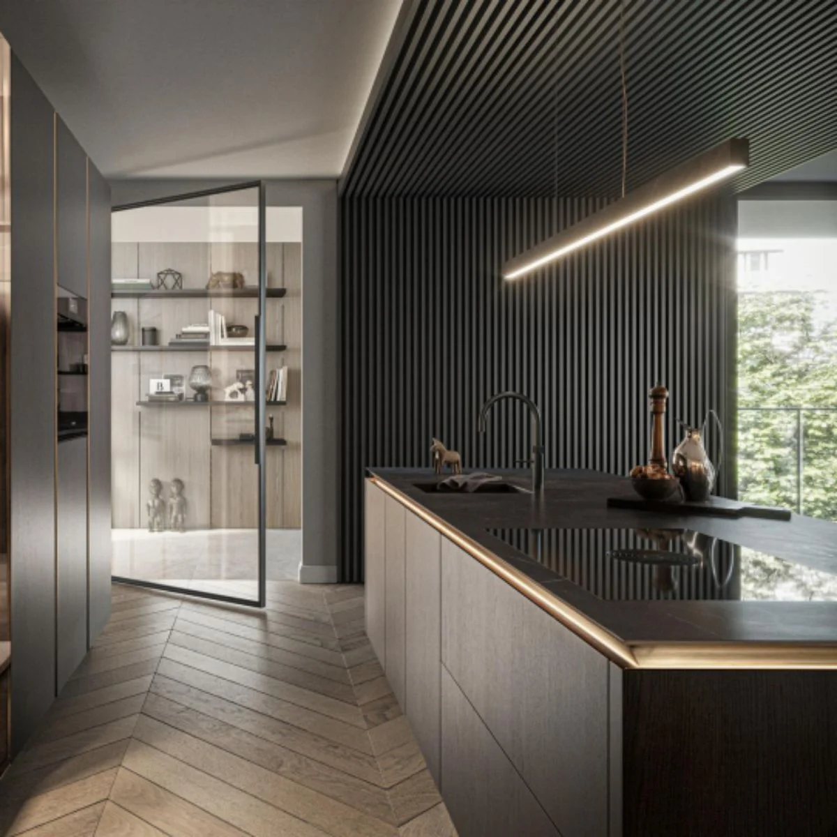 KP Pult profil baza konusZL BR Pult profil - koristi se prilikom izrade namještaja od pločastog materijala Dužina profila: 5m. Obrada: brušeno zlato mat.