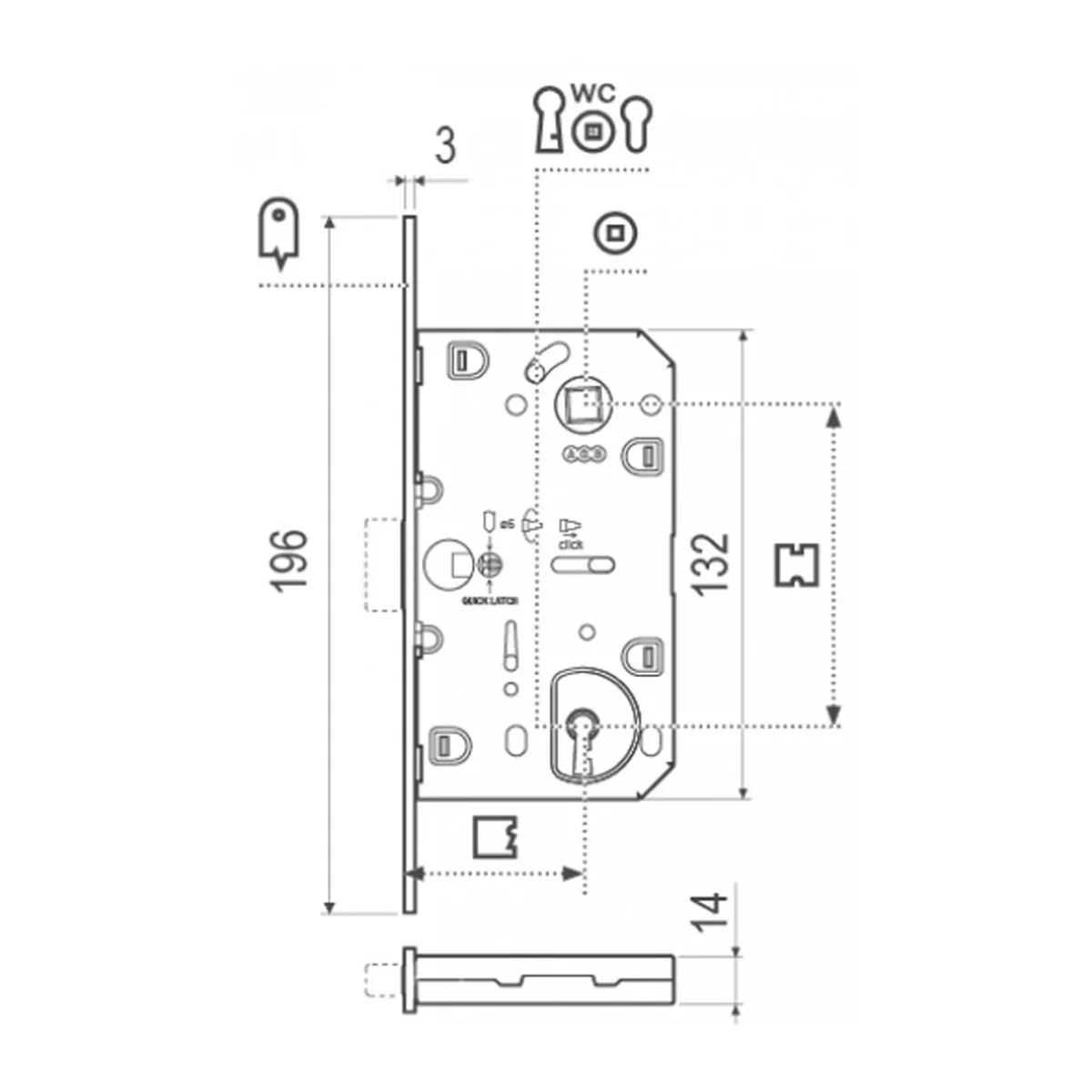 Brava sa magnetnim jezičkom koji se uvlači u istu. Jezičak je napravljen od tvrdog najlona i približne je boje samog tela brave. Brava je revirzibilna i može se koristiti za leva i desna vrata. Kvaka se pokreće i kada je brava zaključana čime ne opterećuje mehanizam. WC funkcija. Boja: hrom