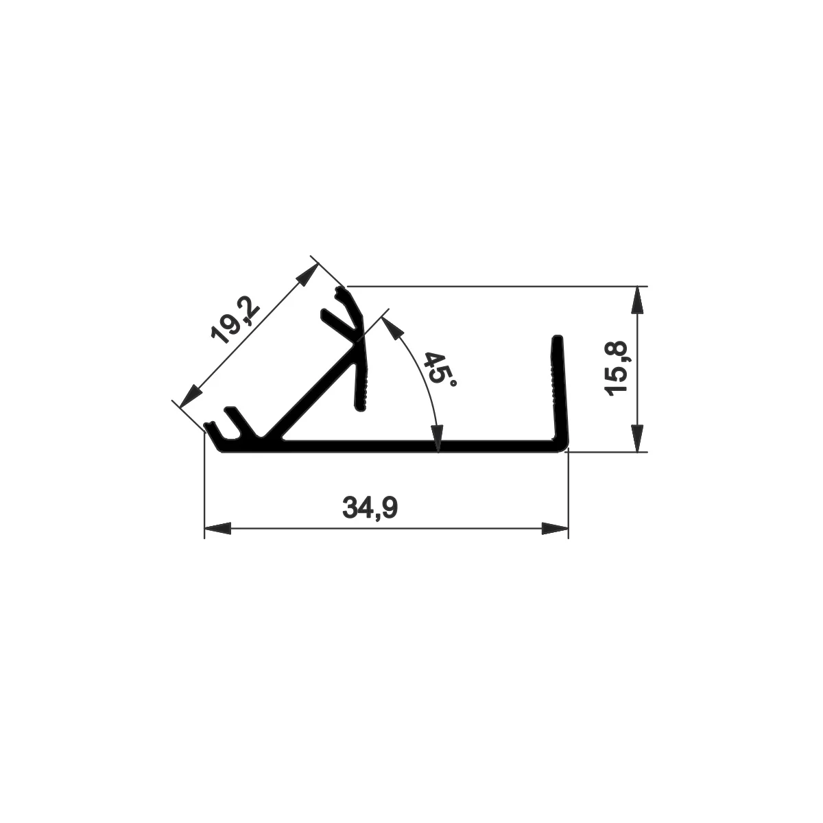 Aluminijumski jednostrani ugaoni LED GLAX profil Jednostrani ugaoni Al LED profil koristi se prilikom izrade namještaja od pločastog materijala kako bi se postigli funkcionalni i estetski svetlosni efekti. Za LED GLAX profil postoji PVC beli poklopac (difuzor) koji se prodaje nezavisno od samog LED profila. Profil omogućava da se LED traka postavi u njega pod uglom od 45 stepeni i namenjen je za LED traku 8mm širine. Jednostrani LED GLAX ugaoni profil pokriva kant police i osvetljava prostor unutar korpusa. Završna obrada LED GLAX profila je proces hemijske eloksaže. Prodajna dužina profila: 3m Boja eloksaže: srebro mat