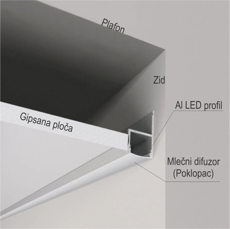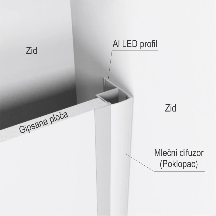 LED zidni profil je 3m dužine i dostupan je u srebro mat završnoj obradi. Al LED zidni profil ne dolazi zajedno sa PVC poklopcem. AL LED zidni profil koristi se za spoj različitih površina kako bi se postigli funkcionalni i estetski svetlosni efekti. Profil donosi brojne mogućnosti u ugradnji, posebno kod gipsanih pregradnih zidova ili spuštenih plafona, a svoju primenu može naći i kod izrade namještaja od pločastih materijala. LED zidni profil (3m) u srebro mat završnoj obradi prodaje se na komad.