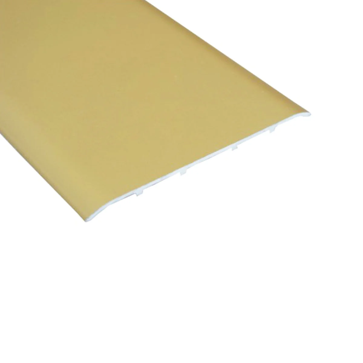 Aluminijumski dekorativni prelazni prag profil 3506 Aluminijumska lajsna se koristi za spoj dve podne obloge u istom nivou. Završna obrada 3506 profila je proces hemijske eloksaže tokom kojeg se dodaje sloj aluminijum oksida koji profilu poboljšava izdržljivost i daje krajnji izgled profila. Montaža profila je stvar ličnog izbora kupca, naša preporuka je pričvršćivanje profila montaž git lepkovima za podnu oblogu. Širina profila: 100mm Debljina profila: 1,5mm Prodajna dužina profila je: 2.7m Debljina eloksiranog sloja: 0,15µm Boja eloksaže: Zlato mat Napomena: Ukoliko se profil šrafi za podnu oblogu, potrebno je koristiti šraf sa upuštenom glavom, takođe je potrebno upustiti (frezenkovati) rupu za šraf u samom profilu.