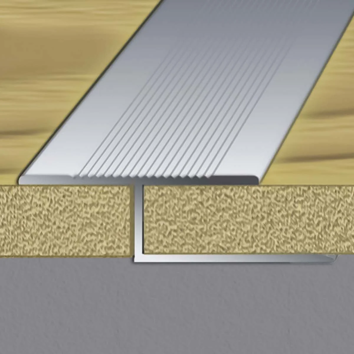 "T" ugradni profil Spaja površine u istom nivou. Postavlja se prilikom ugradnje podne obloge. Prodajna dužina profila : 2,70 m