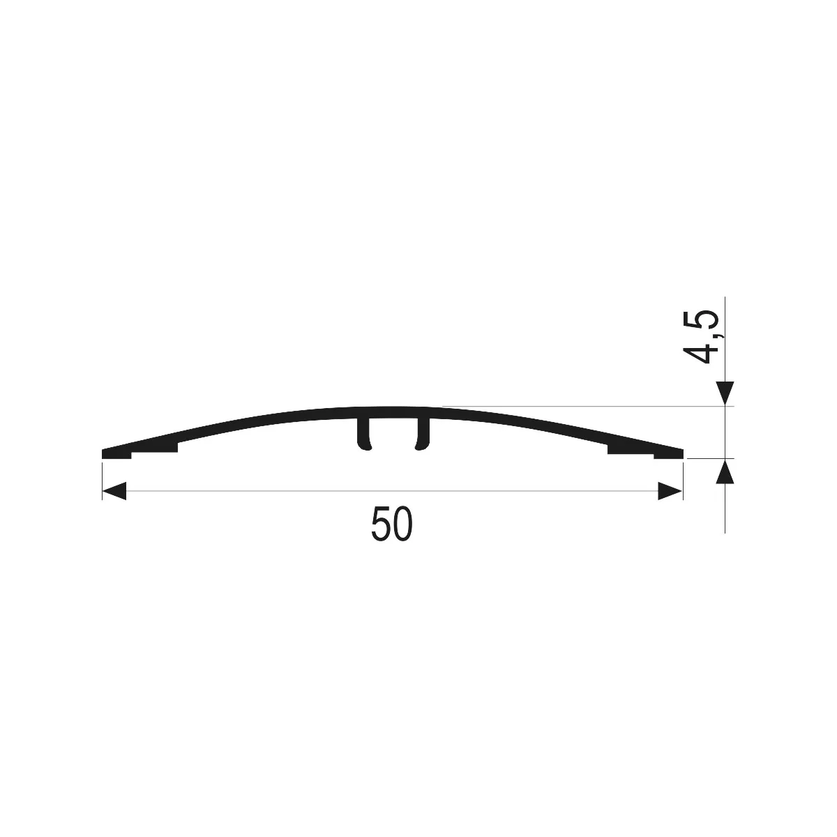 Aluminijumski dekorativni poluobli prelazni profil 5011 Profil sa skrivenim šrafom za spoj površina u istom i različitom nivou ± 3mm. Završna obrada 5011 profila je proces hemijske eloksaže, tokom kojeg se profilu dodaje sloj aluminijum oksida koji poboljšava izdržljivost i daje krajnji izgled profila. Prodajna dužina profila: 0,89m Širina profila: 50mm Debljina profila: 1,2mm Debljina eloksiranog sloja: 0,15µm Boja eloksaže: Srebro mat