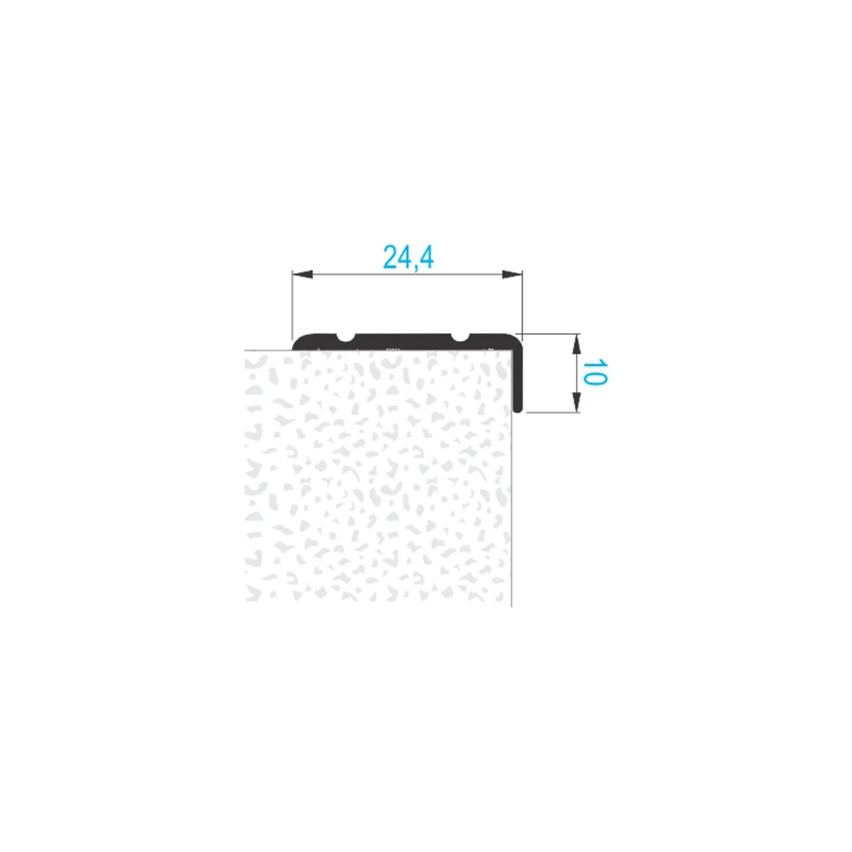 Aluminijumski dekorativni završni „L” profil 2773 Profil se koristi za završetak podnih obloga i namenjen je za podne obloge debljine do 10mm. Završna obrada 2773 profila je proces hemijske eloksaže tokom kojeg se profilu dodaje sloj aluminijum oksida koji poboljšava izdržljivost i daje krajnji izgled profila. Montaža profila je stvar ličnog izbora kupca, naša preporuka je pričvršćivanje montaž git lepkovima za podnu oblogu. Širina profila: 24,4mm Debljina profila: 1,8mm Prodajna dužina profila: 2,7m Debljina eloksiranog sloja: 0,15µm Boja eloksaže: Srebro mat Napomena: Ukoliko se profil šrafi za podnu oblogu, potrebno je koristiti šraf sa upuštenom glavom, pored toga je potrebno upustiti (frezenkovati) rupu za šraf u samom profilu.