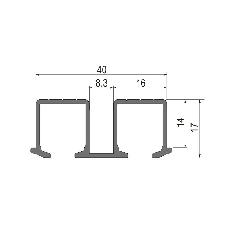 Aluminijumska dvokanalna gornja šina LV EP-04 se ukopava u plafon korpusa. Šina se koristi isključivo za LV EP 041 sistem za izradu lakih drvenih vrata. Završna obrada: Bronza mat eloksaža Al gornja šina je 6m dužine i prodaje se na 1,5m, 2m, 3m, 4m i 6m.