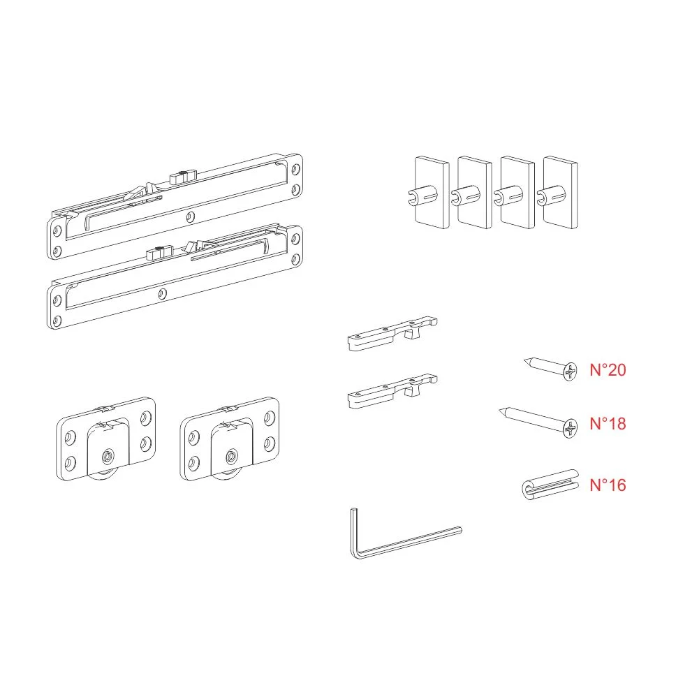 Living Base - mehanizam za izradu drvenih kliznih vrata Living Base mehanizam je namenjen za izradu drvenih vrata minimalne debljine 18mm. Minimalna širina vrata koju zahteva ovaj mehanizma je 600mm . Maksimalna težina vrata je do 20kg. Mehanizmi se ukopavaju u gornjoj i donjoj zoni u sama vrata. Uz mehanizam dolaze i dva hidraulična usporivača.