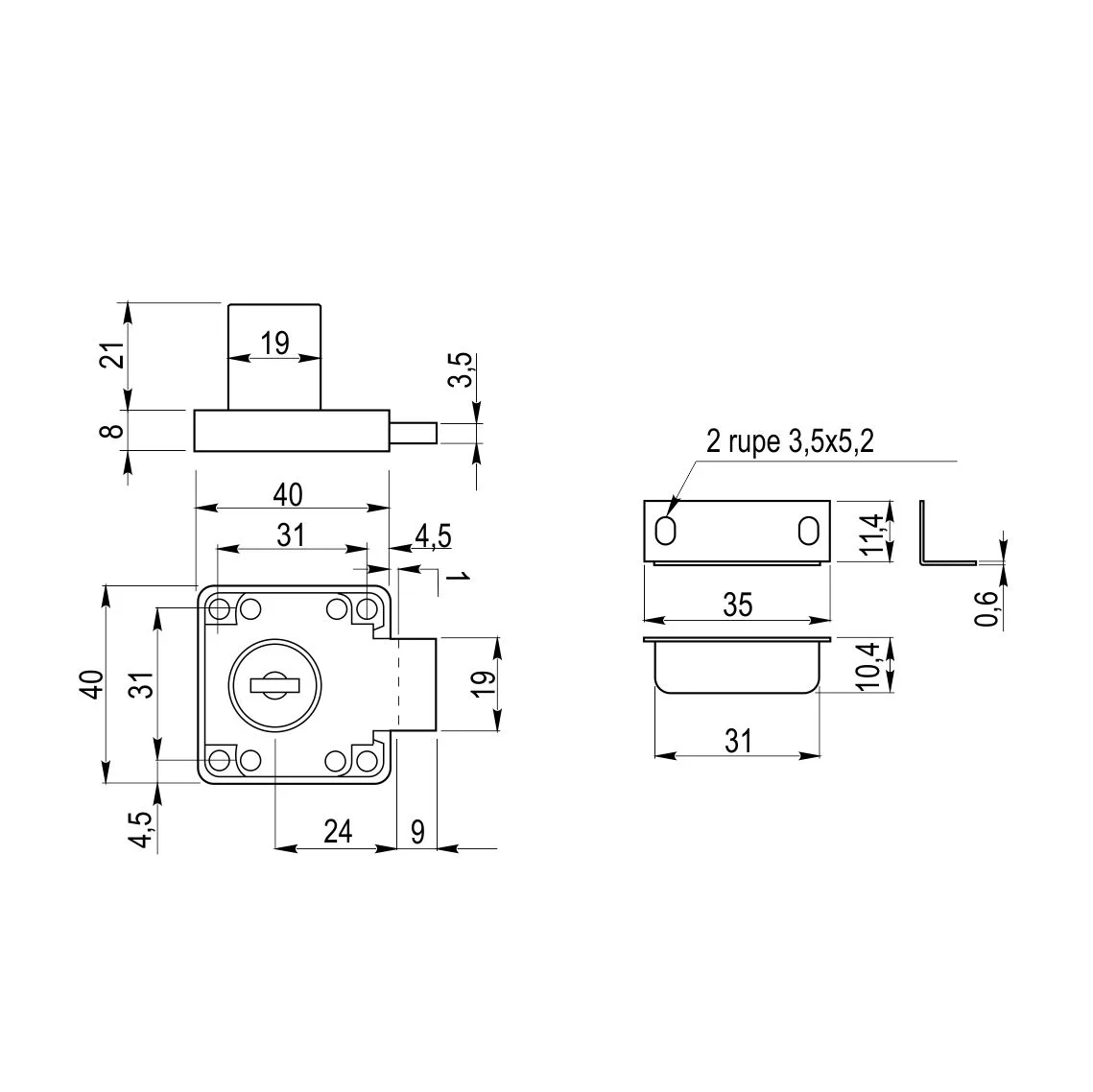 Bravica 138, 40x40mm Bravica se može koristiti uz RAM 1002A profil za izradu Al fronta, samo kada su vrata unutar korpusa (kada se koristi puno koleno šarka). Potrebno je izbušiti otvor u podu korpusa kako bi bravica mogla da se zaključa. Materijal: Čelik / ZnAl Završna obrada: Srebro sjaj