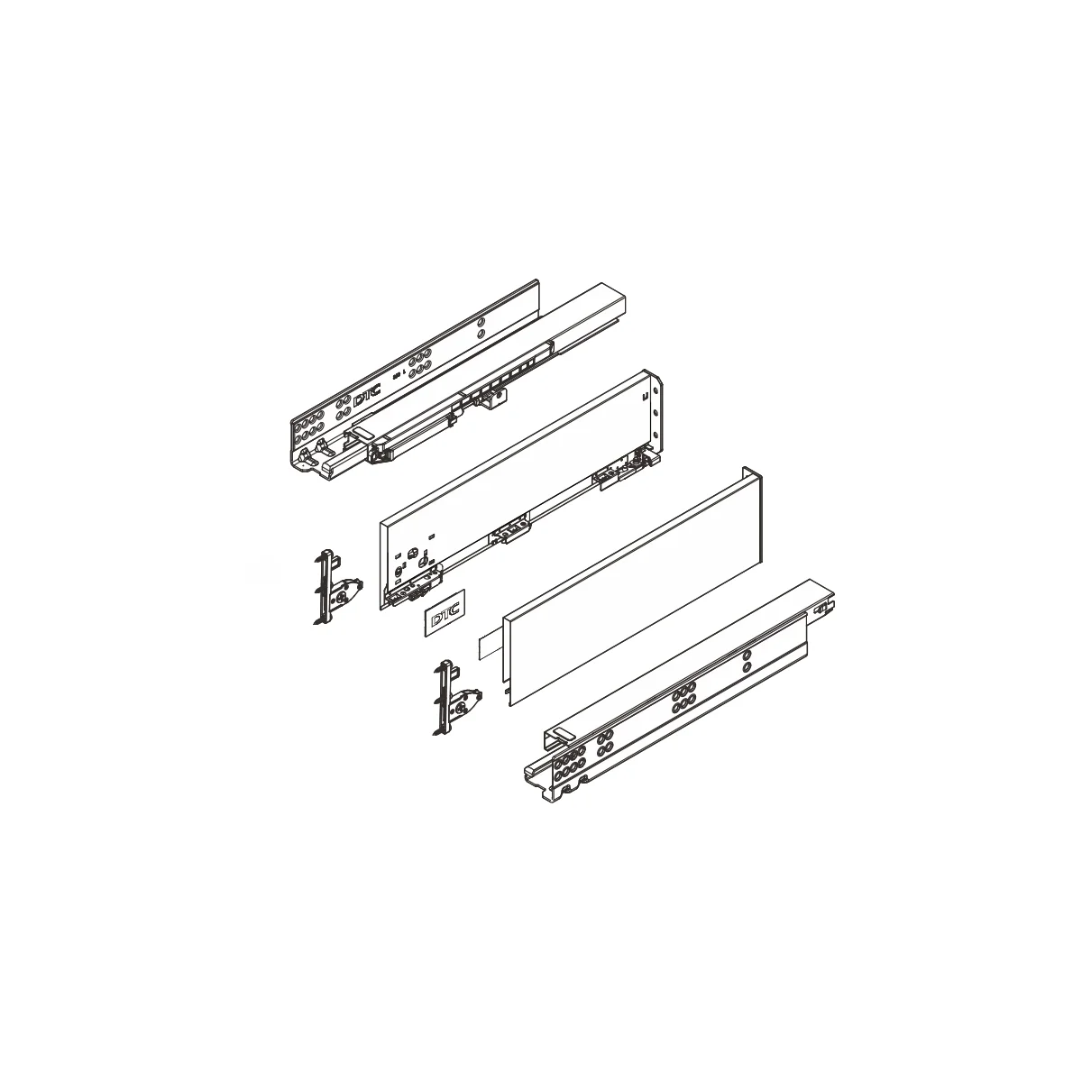 Set se sastoji od skrivenih klizača sa integrisanim usporivačima 300mm dužine, metalnim stranicama visine 126mm i svim pratećim elementima za montažu iste. Metalne stranice su namenjene za drvene panele 18mm debljine i nije potrebno falcovanje istih pre montaže fioke. - Nosivost: 40kg - Potpuno izvlačenje - 80000 ciklusa otvaranja/zatvaranja - Boja: bela