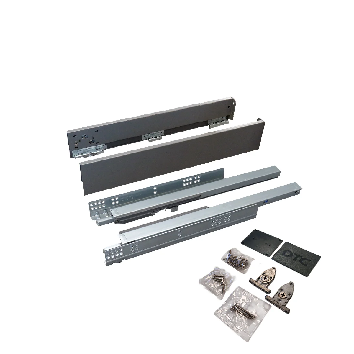 Set se sastoji od skrivenih klizača sa integrisanim usporivačima 350mm dužine, metalnim stranicama visine 88mm i svim pratećim elementima za montažu iste. Metalne stranice su namenjene za drvene panele 18mm debljine i nije potrebno falcovanje istih pre montaže fioke. - Nosivost: 40kg - Potpuno izvlačenje - 80000 ciklusa otvaranja/zatvaranja - Boja: antracit