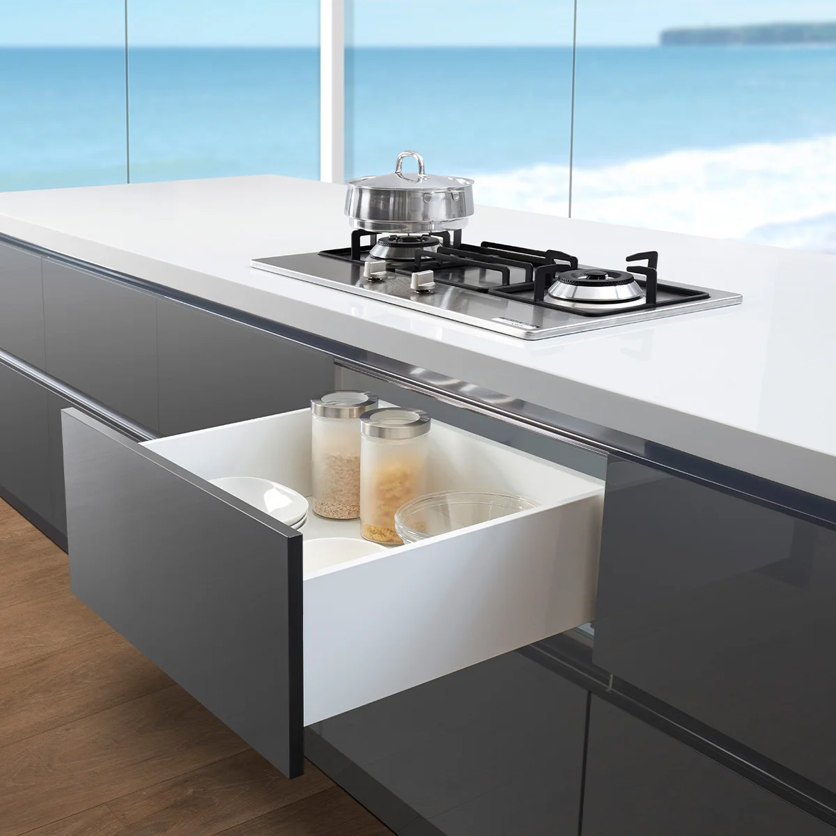 Set se sastoji od skrivenih klizača sa integrisanim usporivačima 450mm dužine, metalnim stranicama visine 88mm i svim pratećim elementima za montažu iste. Metalne stranice su namenjene za drvene panele 18mm debljine i nije potrebno falcovanje istih pre montaže fioke. - Nosivost: 40kg - Potpuno izvlačenje - 80000 ciklusa otvaranja/zatvaranja - Boja: antracit