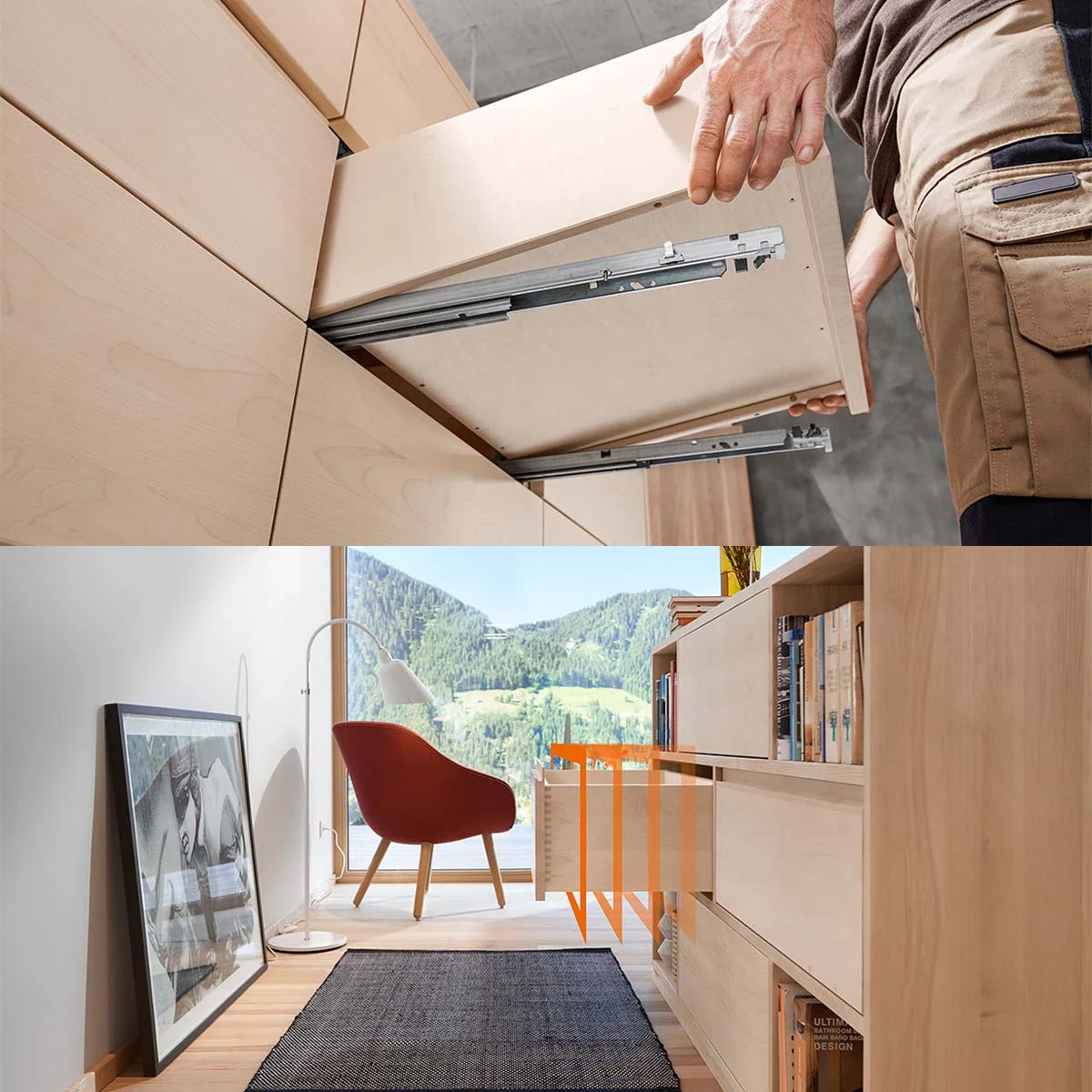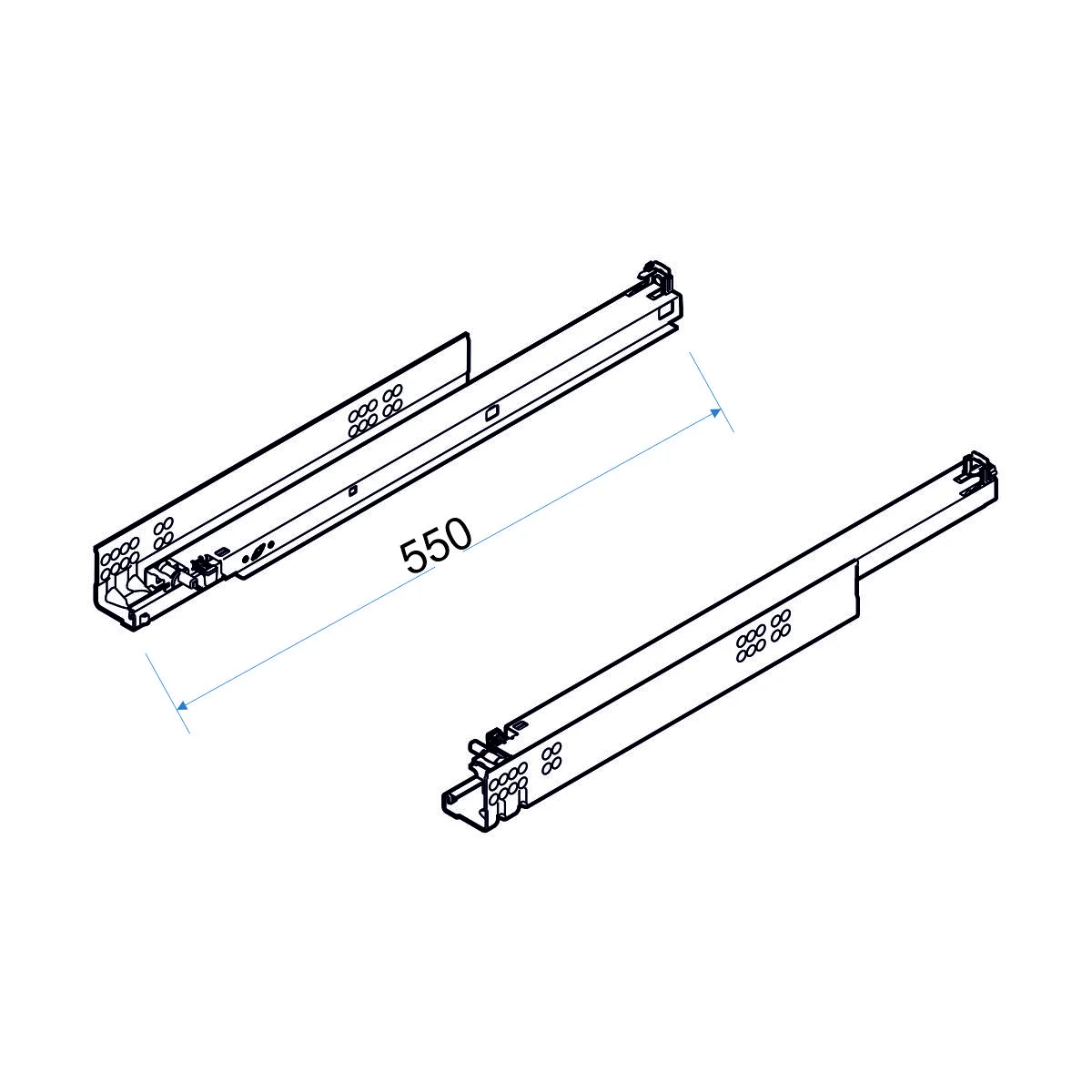 OKL S kliz.P push 550 BLUM Skriveni sistem vođica je opteretiv maksimalno do 30 kg i dostupan je kao potpuno izvlačenje. Integrisan TIP ON. Tandem klizač odlikuje izuzetna stabilnost čak i kada je fioka potpuno napunjena. Dužina klizača: 550mm.