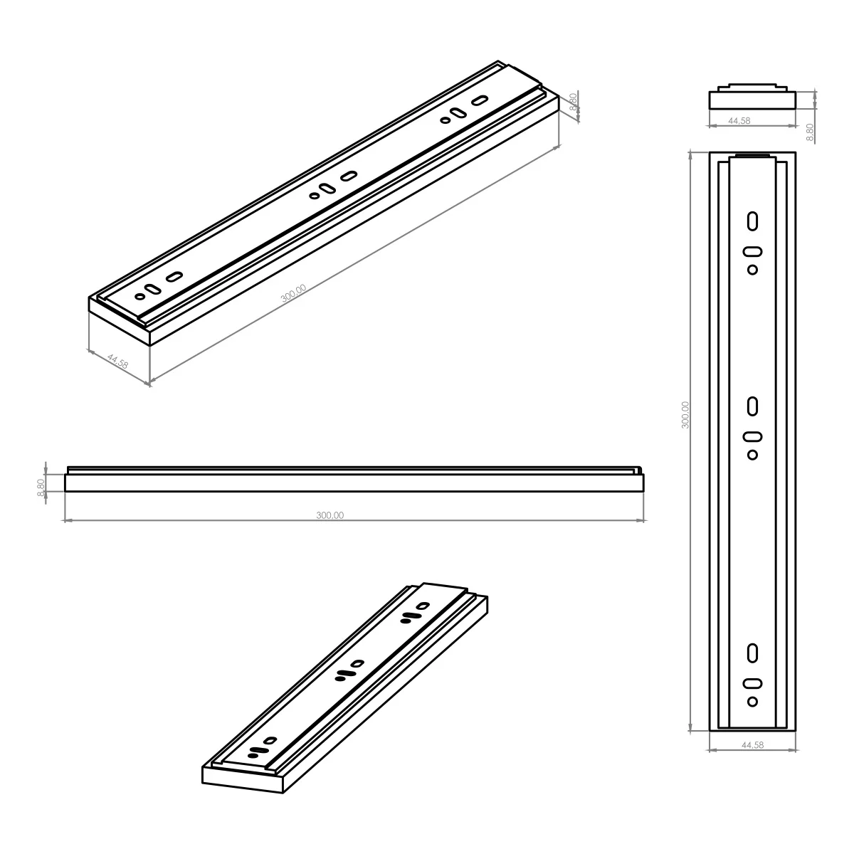 Nosivost: 45kg Potpuno otvaranje Dužina klizača: 300mm Boja: crna