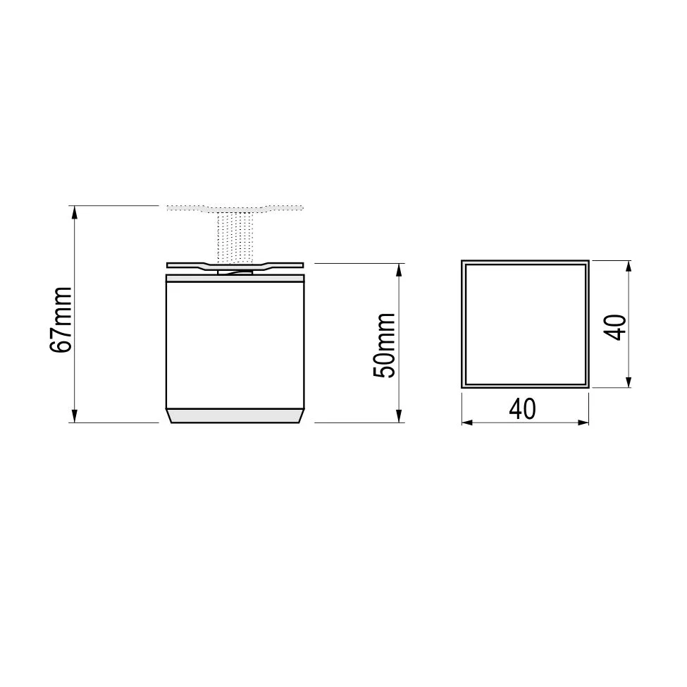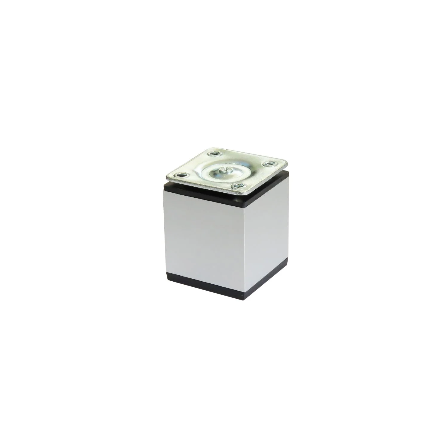 ALU nogica 40x40mm L=5cm - mat srebro Nogica se izrađuje od ALU profila 40x40mm. PVC elementi (poklopci) su crne boje. Visina nogice može biti od 5cm do 6cm.