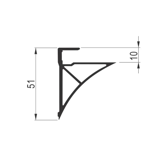 SM-1045 D/10 aluminijumski profil Aluminijumski dekorativni profil za staklene ili drvene police. Maksimalna debljina materijala je 10mm. Profil je dužine 3m.