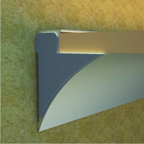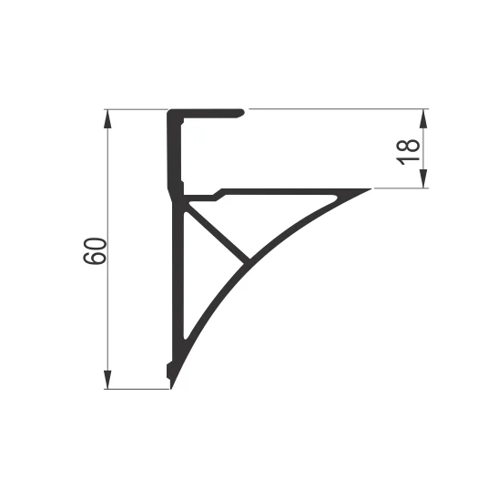 SM-1045 D aluminijumski profil Aluminijumski dekorativni profil za police. Namenjen je za police debljine 18mm. Profil je dužine 3m.