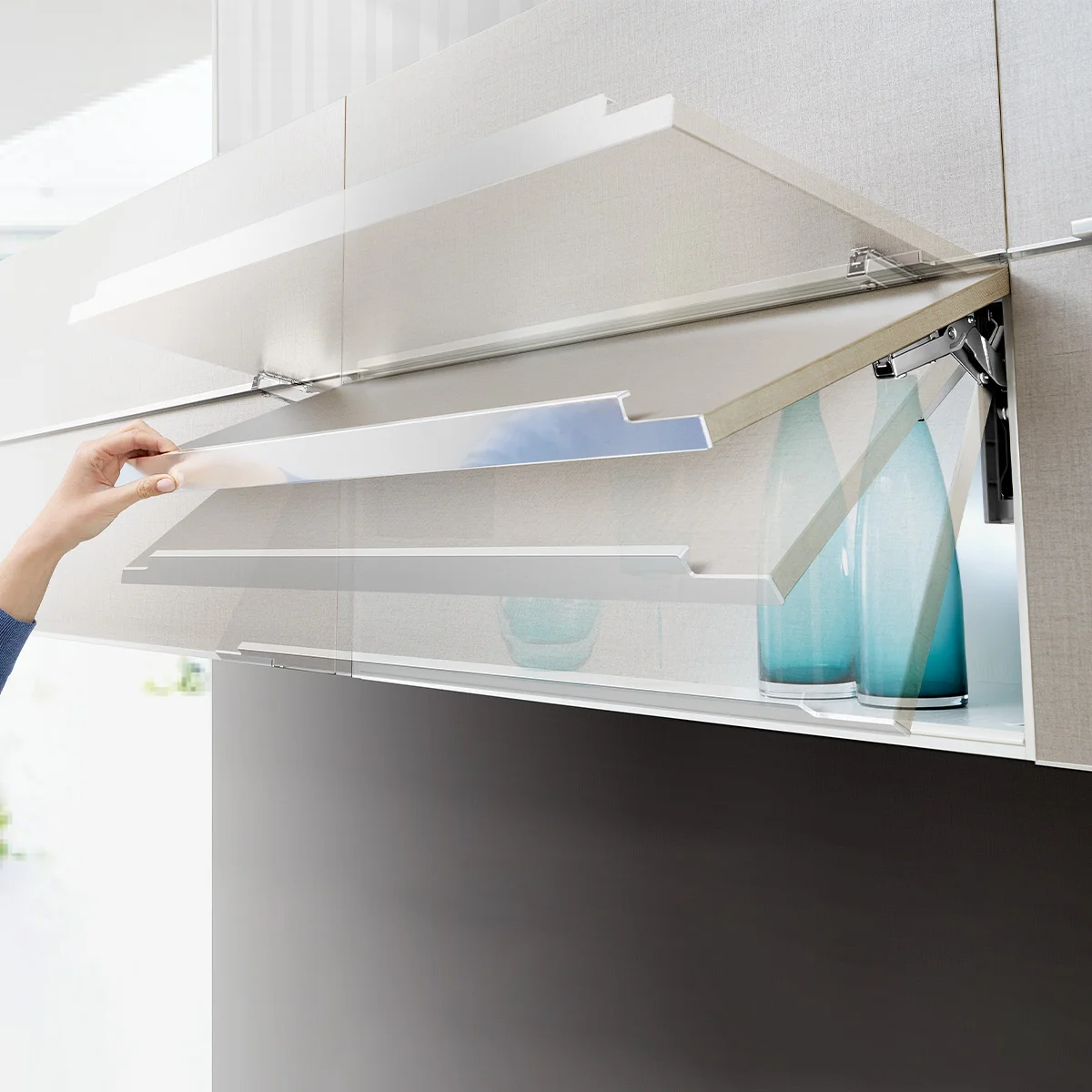 OPM SQ meh.1600-3600 DTC Ugao otvaranja: 107º Širina korpusa: do 1200mm Visina korpusa: od 250 do 600mm Debljina fronta: od 16 do 28mm 3D podešavanje 60000 ciklusa otvaranja/zatvaranja Boja kapice: bela U kutiji se nalazi i šablon za montažu. Faktor snage se povećava za 50% kada se doda treći mehanizam. * Formula za izračunavanje faktora snage: (visina (m) x širina (m) x težina/m2 (kg)) x visina (mm) Težina okvirno za materijale: iverica - 13kg/m2 mdf - 15kg/m2 staklo u alu ramu - 13kg/m2