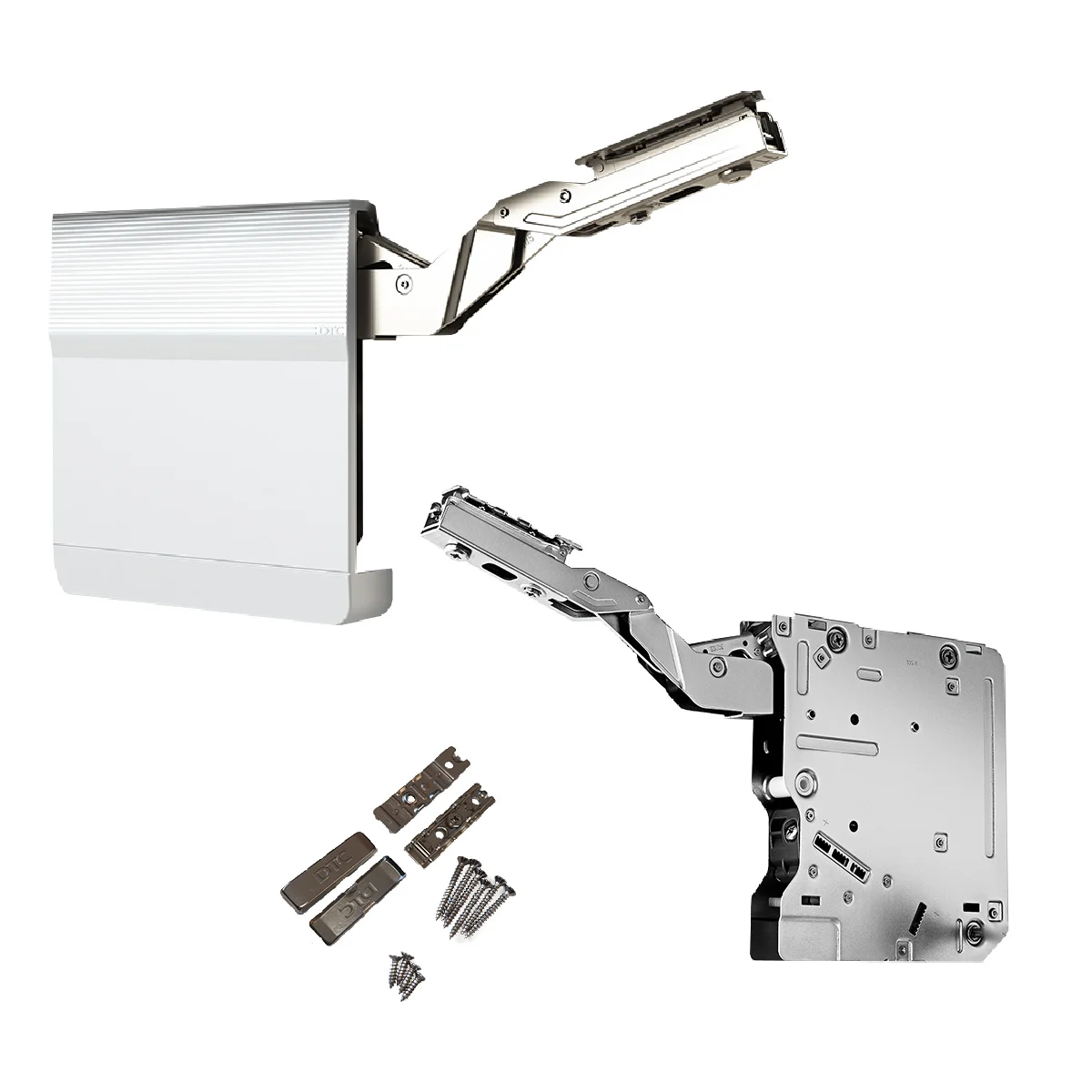OPM SQ meh.960-2350 DTC Ugao otvaranja: 107º Širina korpusa: do 1200mm Visina korpusa: od 250 do 600mm Debljina fronta: od 16 do 28mm 3D podešavanje 60000 ciklusa otvaranja/zatvaranja Boja kapice: bela U kutiji se nalazi i šablon za montažu. Faktor snage se povećava za 50% kada se doda treći mehanizam. * Formula za izračunavanje faktora snage: (visina (m) x širina (m) x težina/m2 (kg)) x visina (mm) Težina okvirno za materijale: iverica - 13kg/m2 mdf - 15kg/m2 staklo u alu ramu - 13kg/m2