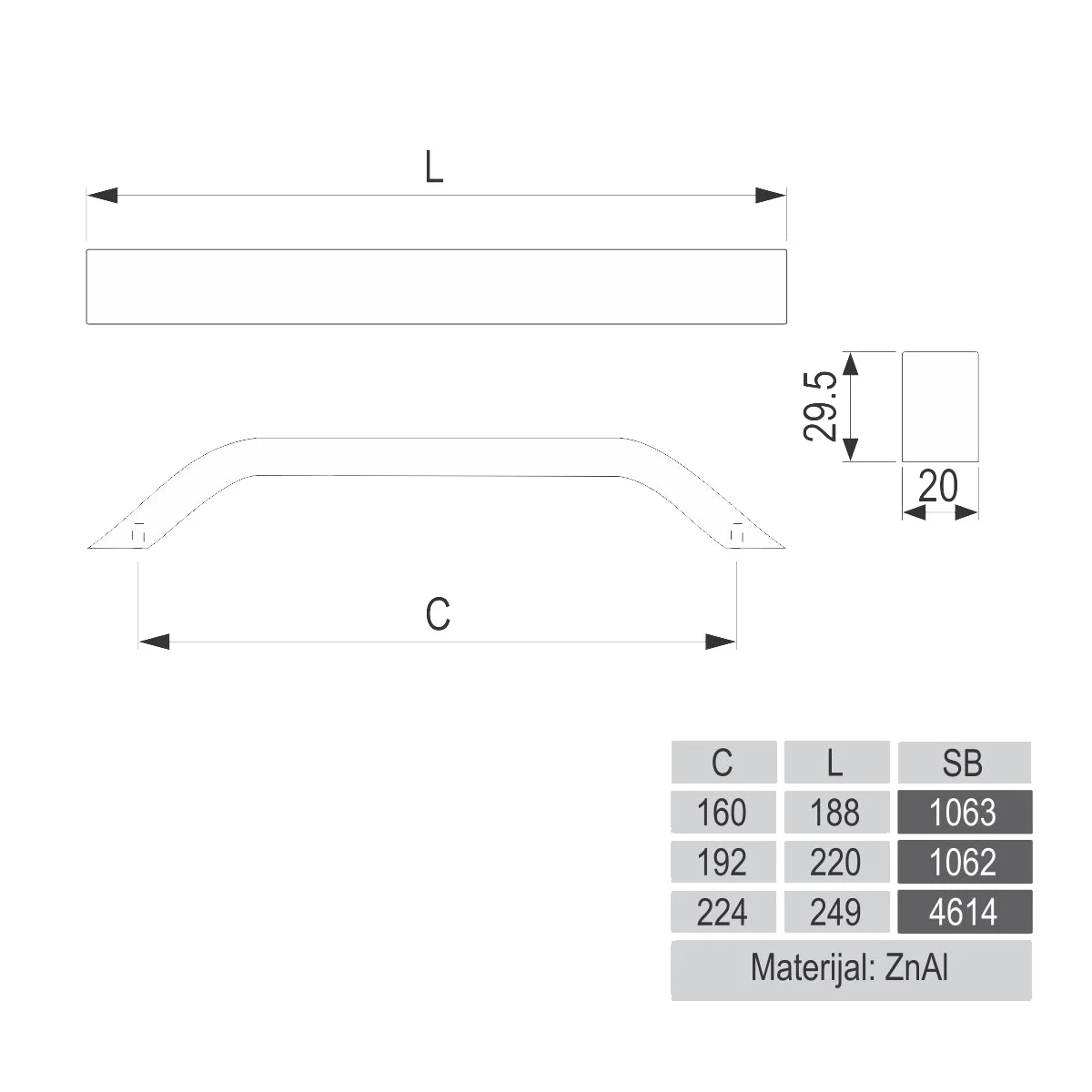 ORN N SM ručica za namještaj Razmak rupa za šraf/dimenzija ručice: 192/220mm Boja: srebro sjaj Materijal: Zn Al