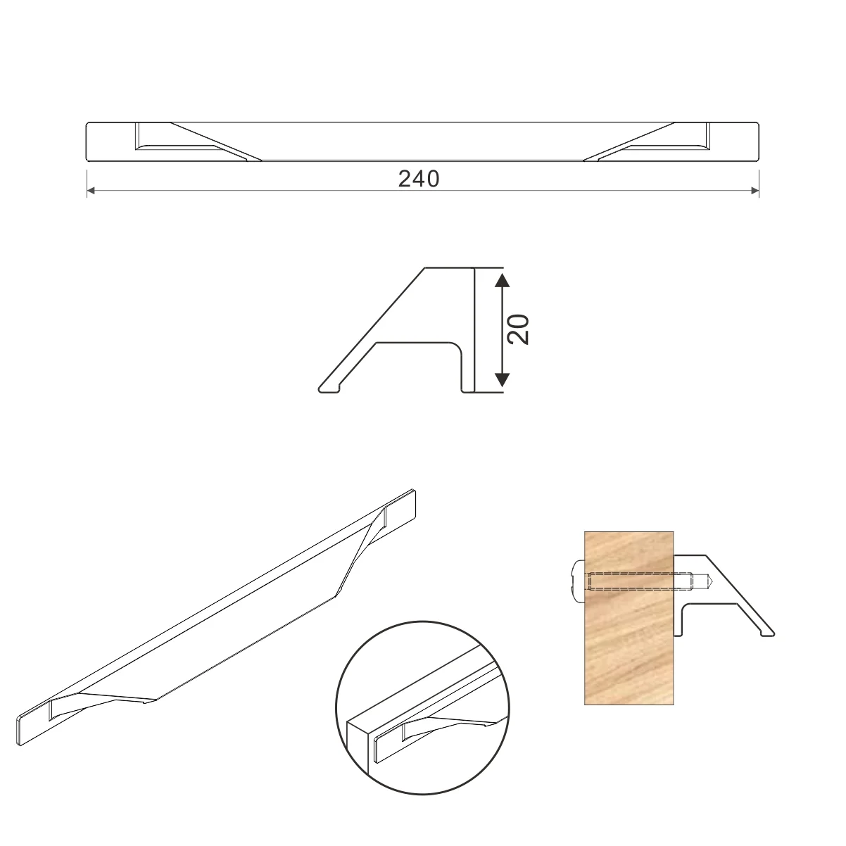 ORN N ruč.2381/240mm AL CRNA Na ručici su po četiri rupe za šraf, pa tako raspon rupa može biti 96 i 128.
