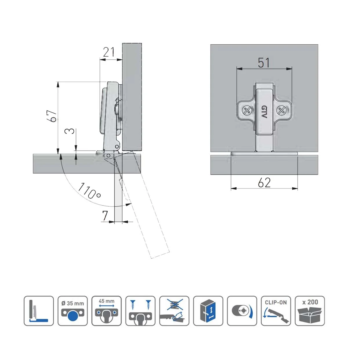 Šarka za namještaj - Ravna bez opruge Šarke se koristi uglavnom kada se postavljaju potisni mehanizmi za otvaranje vrata. Prečnik šoljice je 35mm. Uz šarku dolazi i "klik" pločica. Podešavanje šarke je u dve ose.