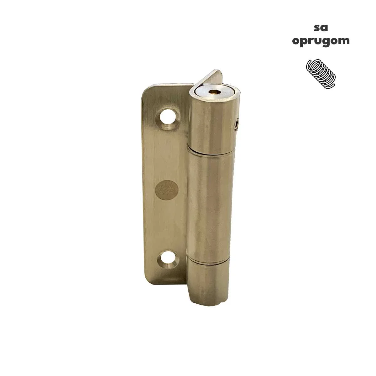 INOX šarka 90x53x2mm sa oprugom, namenjena je za izradu vrata za toalet kabine. Šarka je potpuno vodootporna, tj. rađena po standardu EN 1670:2007 (otporan na koroziju). Osovina šarke je takođe od nerđajućeg čelika. Materijal: INOX 304 - nerđajući čelik Napomena: Cena se odnosi na 1 komad šarke. Vijci ne dolaze uz šarku.
