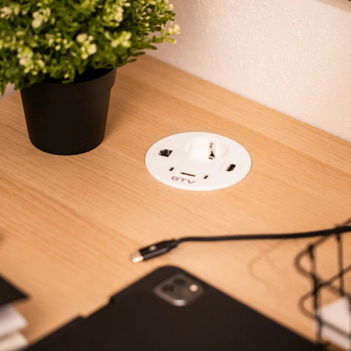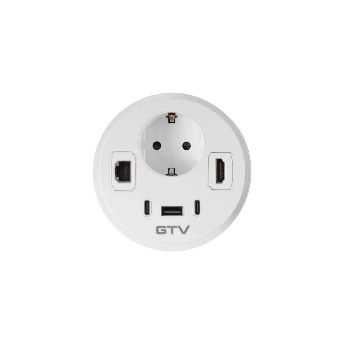 Ugradna utičnica RONDO Materijal: aluminijum/plastika Obrada: bela Dužina kabla sa utikačem: 1,5m Tip utučnice: 1xšuko utičnica RJ45, USB A+C, HDMI Napajanje: 5, DC (V, Hz)