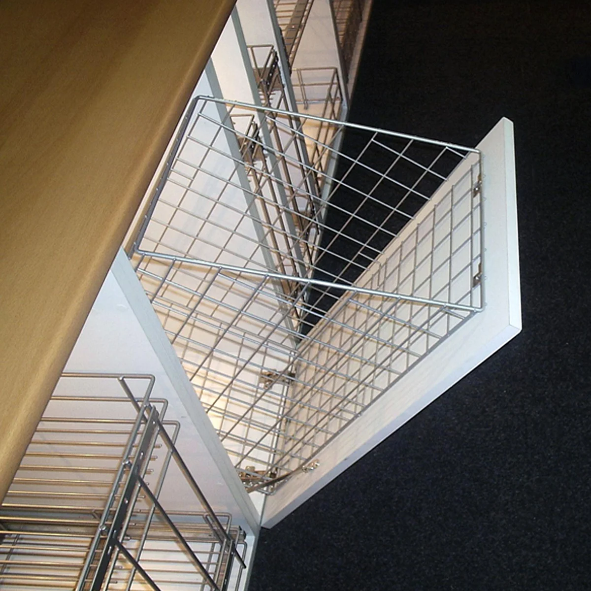 Žičana korpa za veš Boja: bela Materijal: plastificirana polučelična žica Širina elementa: 400mm Visina elementa: 600mm