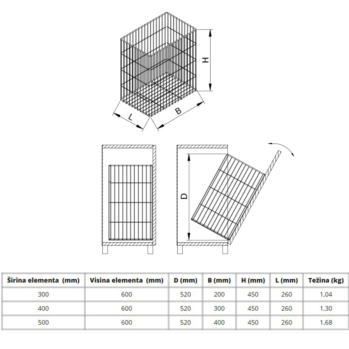 Žičana korpa za veš Boja: metaliksiva Materijal: plastificirana polučelična žica Širina elementa: 500mm Visina elementa: 600mm