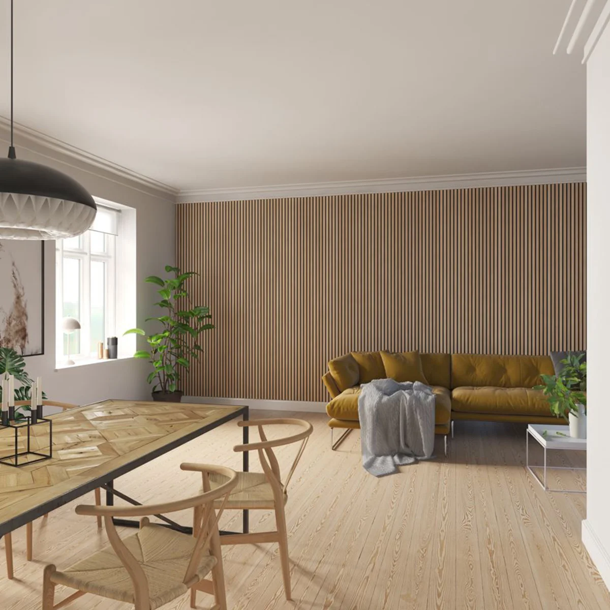 Panel-filc let.21mm TH 240x60 Boja letvica: tamni / dimljeni hrast Boja filca: crna Debljina panela: 21mm Dimenzije: 2400x600mm Filc paneli uspešno rešavaju kontrolu zvuka u prostoru, pružajući kombinaciju funkcionalnosti i estetike. Paneli sa drvenim letvicama su vrlo atraktivni i često se koriste za uređenje enterijera u stambenom ili poslovnom prostoru.