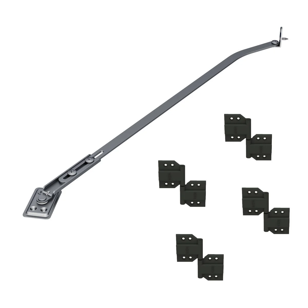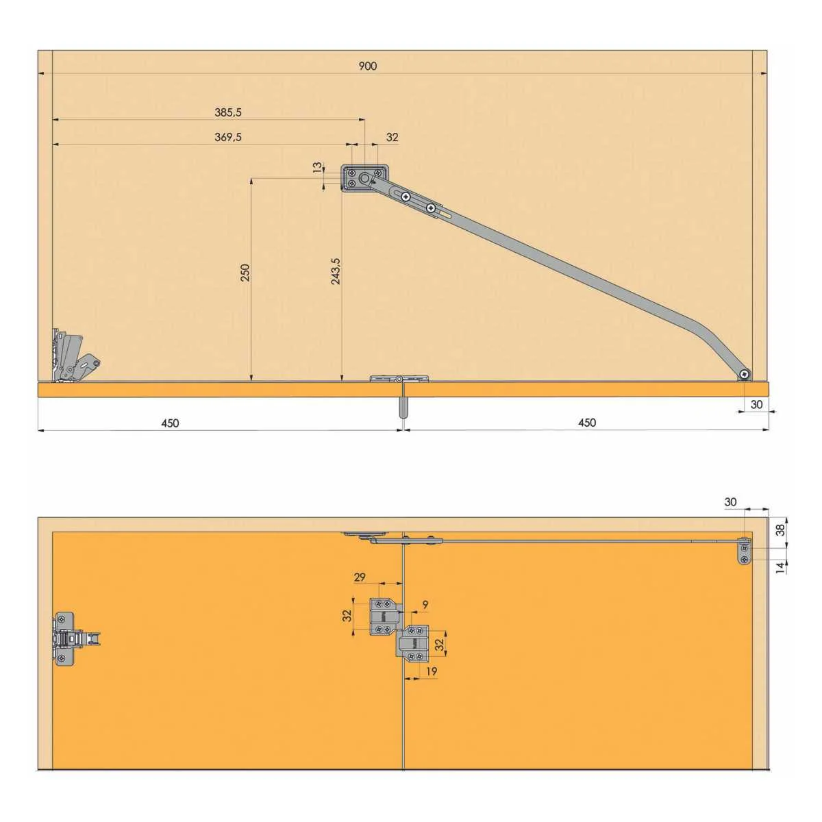 PV S45 je sistem za izradu klizno preklopnih vrata Mehanizam je namenjen za jedno lomljivo krilo do 30kg težine. Preporučena debljina drvene ispune je od 16-18mm. Za montažu S45 sistem nisu potrebne gornja i donja šina. U prodajnom setu se dobijaju PVC šarke i gornji mehanizam sa polugom. Uz S45 mehanizma bi trebalo koristiti šarke 165°, dostupne modele možete pogledati u povezanim proizvodima.